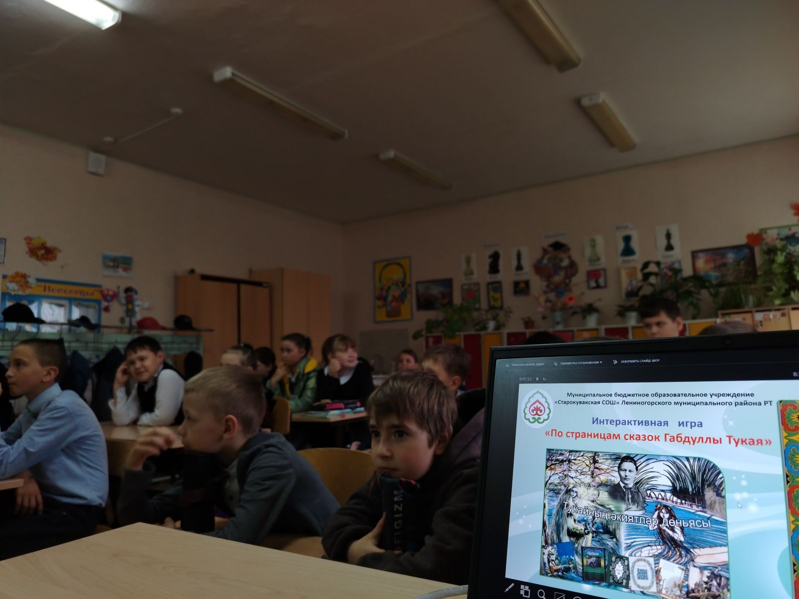 «По страницам сказок Габдуллы Тукая». Ребята вспомнили известного татарского поэта, автора детских сказок и стихов, отвечали на вопросы.- Чтение стихов Г. Тукая на родном языке. Ученица 7 класса Жанна В. прочитала стихотворение «Туган авыл», ученик 6 класса Максим В. прочел стихотворение «Родной язык».