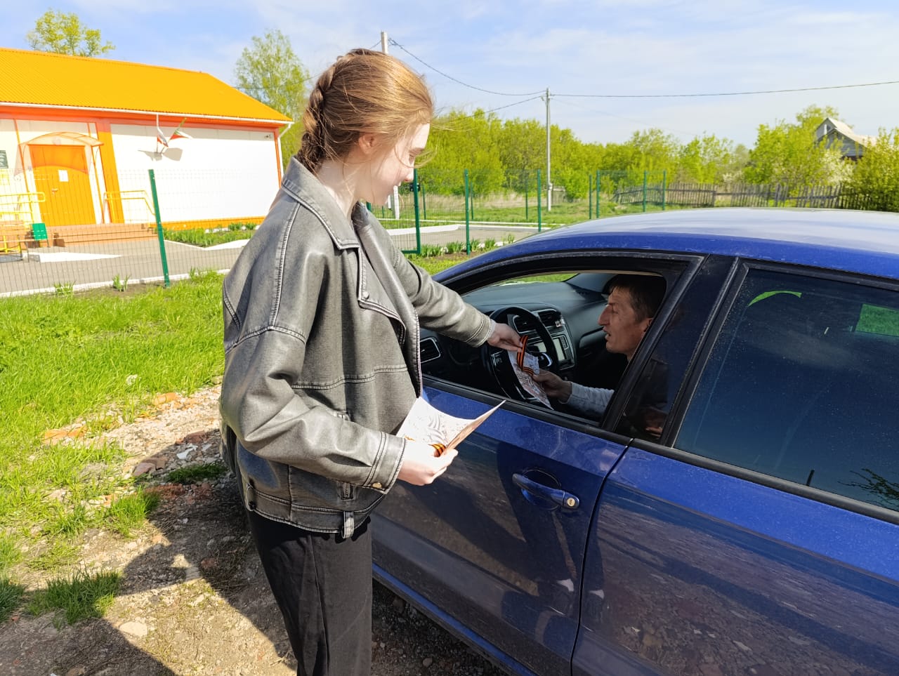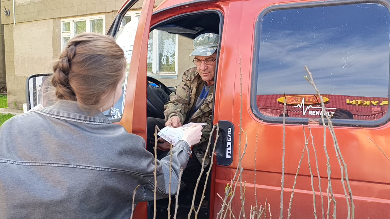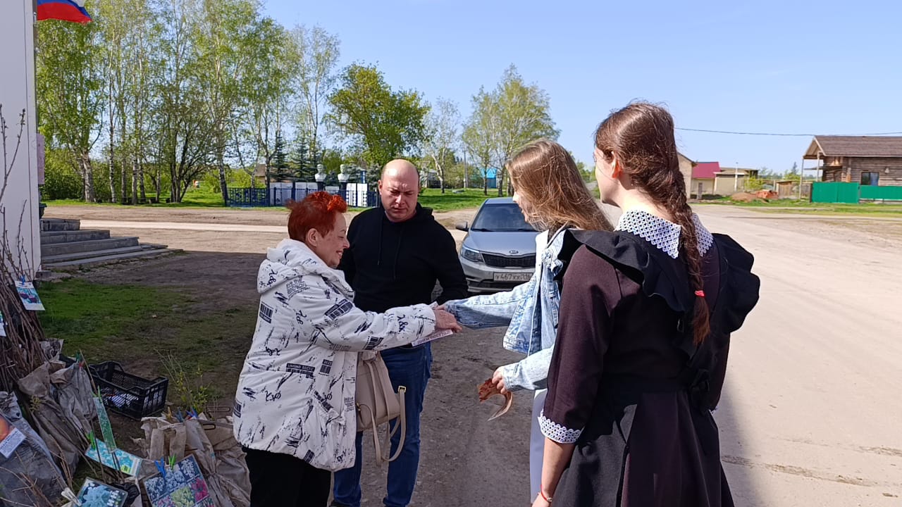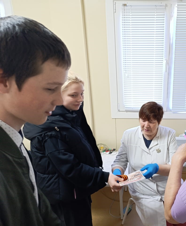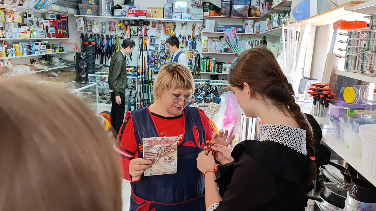 Обучающиеся вручали георгиевские ленты, праздничные открытки и поздравляли прохожих с наступающим праздником.