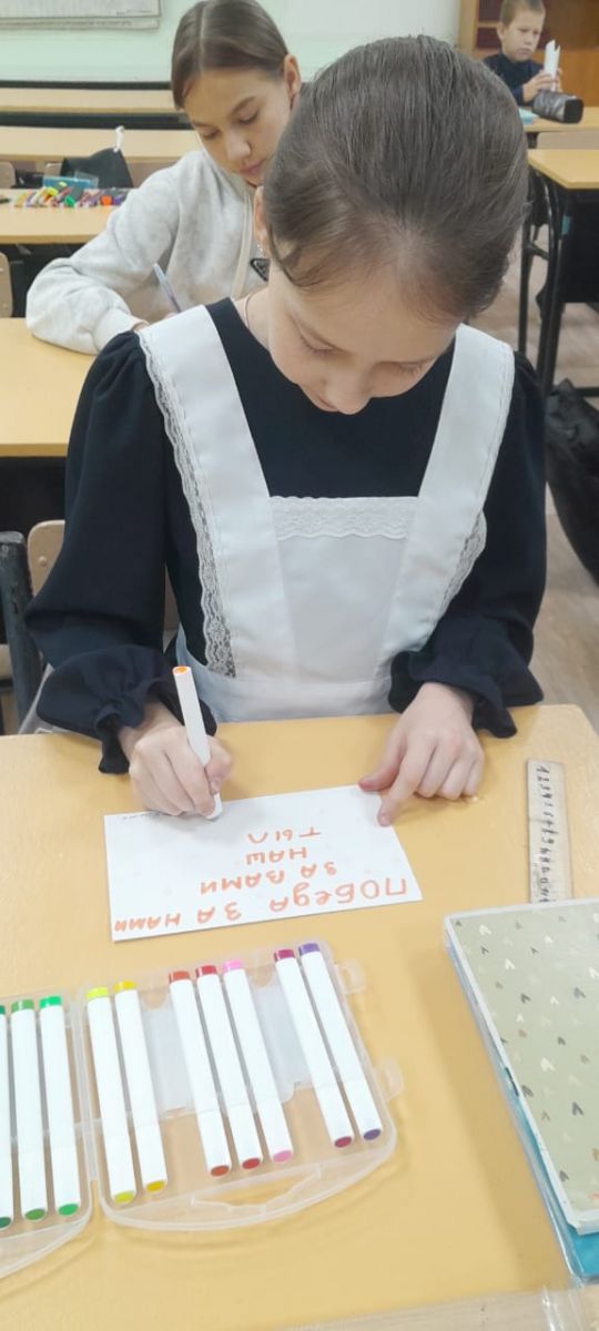 В нашей школе прошла масштабная патриотическая акция «Письмо солдату». В ней приняли участие ученики нашей школы, чтобы поддержать российских военнослужащих, выполняющих свой долг.В течение недели учебные классы превратились в творческие мастерские. Ребята с огромным энтузиазмом и теплотой создавали свои послания. Ученики старательно выводили буквы и украшали конверты яркими рисунками: солнце, голуби мира, российский флаг и символы надежды. На листах бумаги расцветали салюты Победы, красные гвоздики и трогательные образы семей, ждущих своих героев дома. Они писали искренние слова благодарности за мужество и стойкость, желали крепкого здоровья и скорейшего возвращения домой.