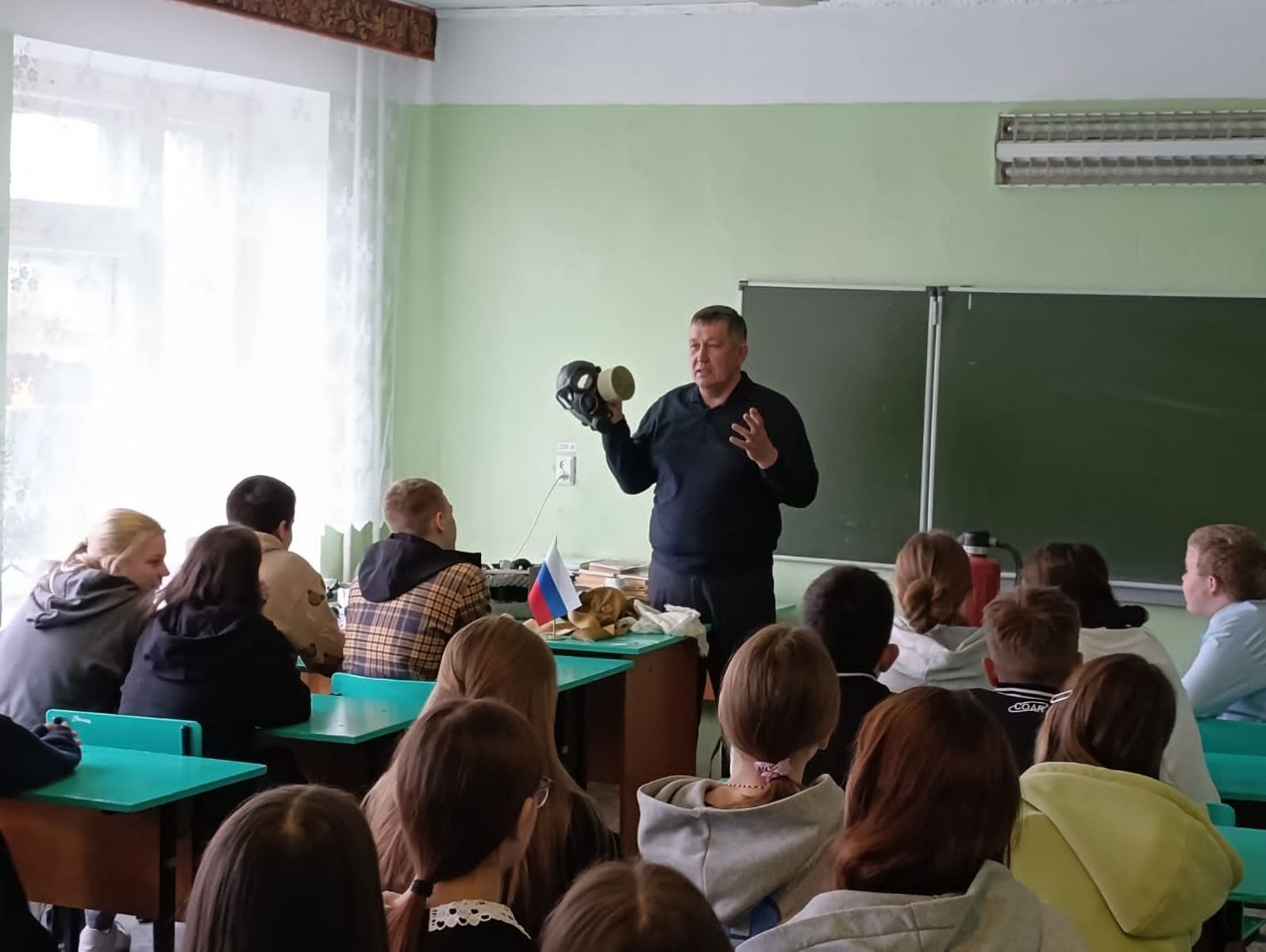 Напомнил ученикам как распознавать потенциальные угрозы, порядку реагирования на различные сигналы Гражданской обороны, разумной оценке своих сил и принятию грамотных решений в соответствии с четкими алгоритмами действий в той или иной ситуации чрезвычайного характера.