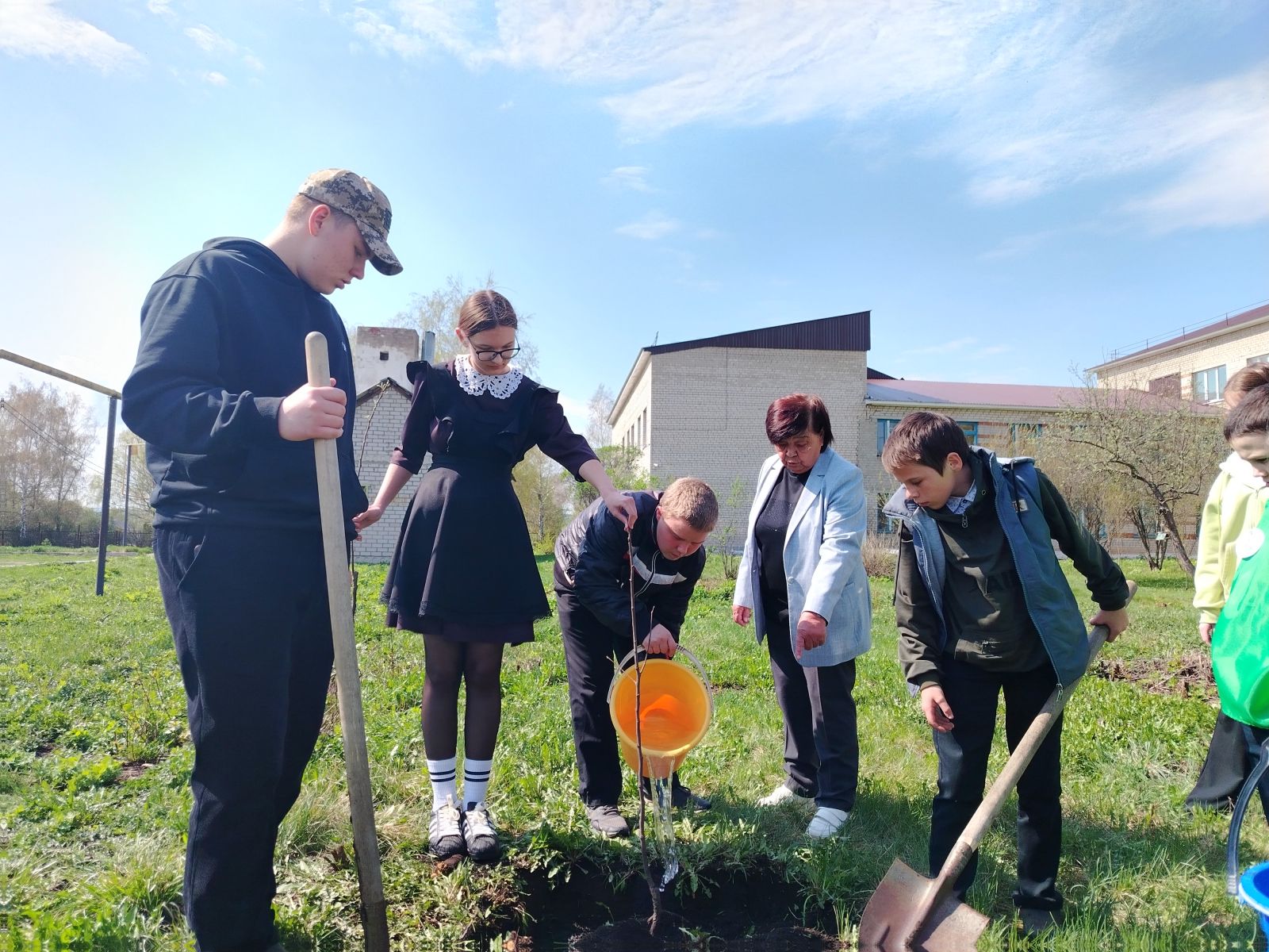 В нашей школе сегодня прошла акция «Сад памяти». В акции приняли участие педагоги, ребята 9 и 11 классов, а также приглашенный гость «Ветеран труда», «Отличник народного просвещения», бывший директор МБОУ «Старокувакская СОШ», учитель биологии Денисова Мария Макаровна. Все дружно высадили саженцы в память о погибших защитниках Родины.