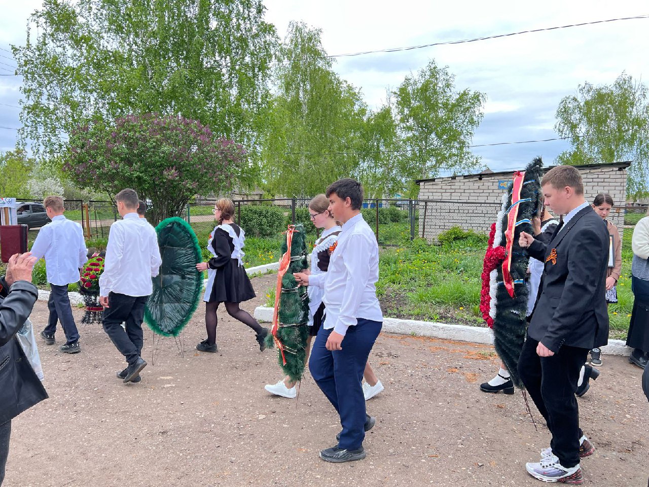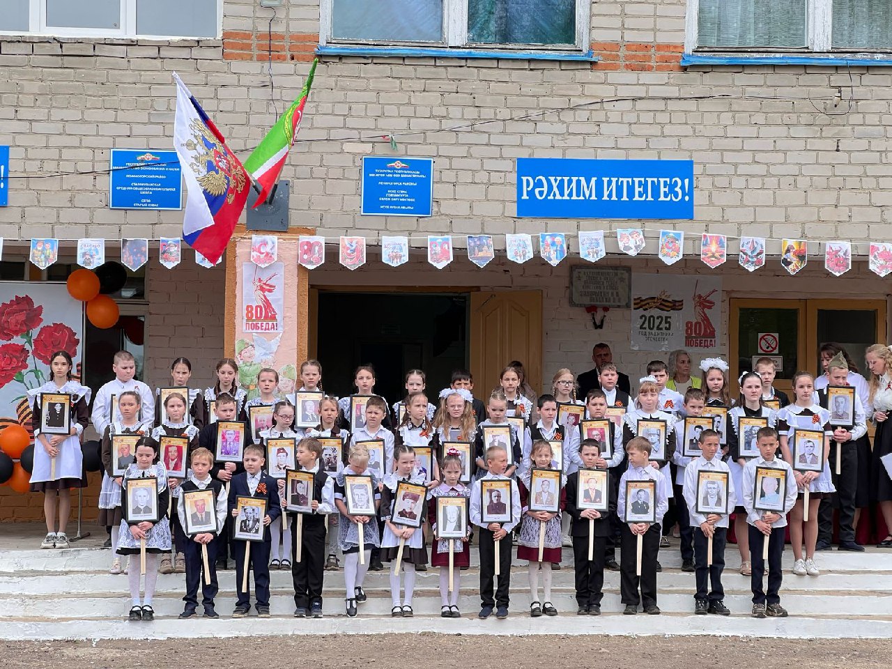 Ученики пели военные песни, читали стихи и разыгрывали трогательные сценки о подвиге советских солдат. Самые маленькие наши дошкольники, волнуясь, рассказывали проникновенные строки о мире и героизме, а их искренность растрогала всех присутствующих. Завершился митинг акцией «Бессмертный полк» — на крыльце школы дети и педагоги с портретами ветеранов создали живую цепь памяти, отдавая дань уважения тем, кто подарил нам Победу.