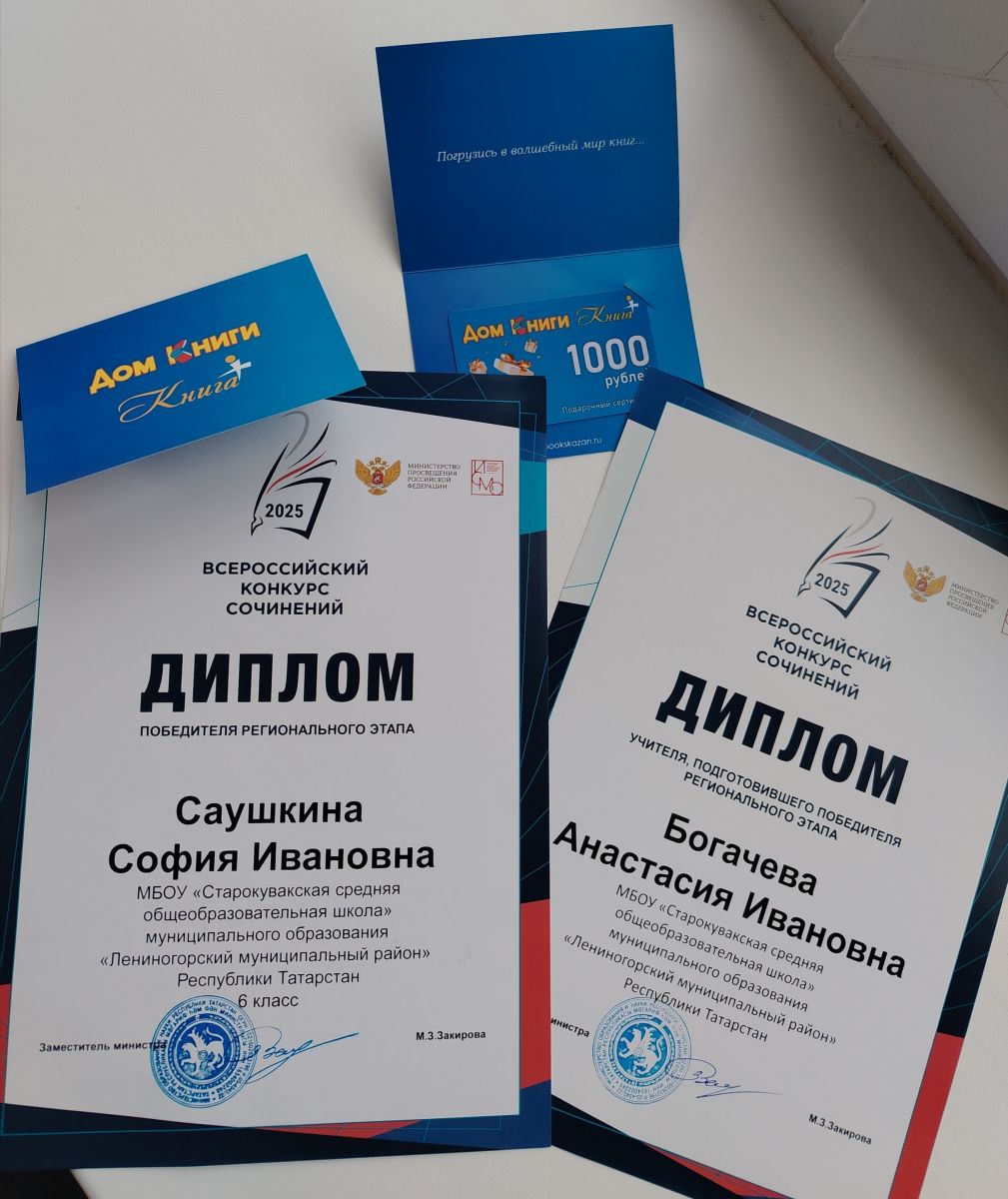 Помимо заслуженной победы, ученицу и её наставника отметили вручением почетных дипломов. Для закрепления успеха школьнице и педагогу также достался приятный бонус — подарочный сертификат номиналом в одну тысячу рублей в Дом Книги.