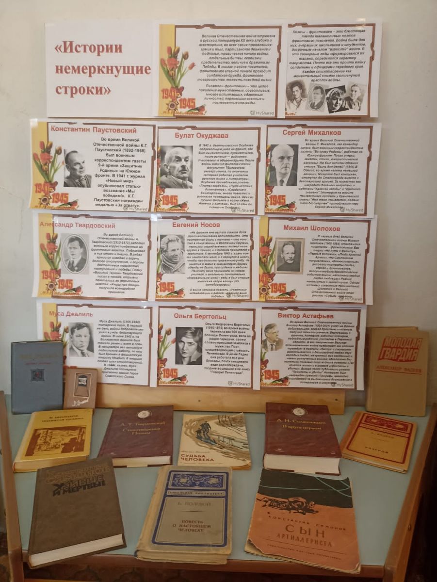 В данной выставке были представлены произведения А.Твардовского, М.Шолохова, Б.Окуджавы, М.Джалиля и др.