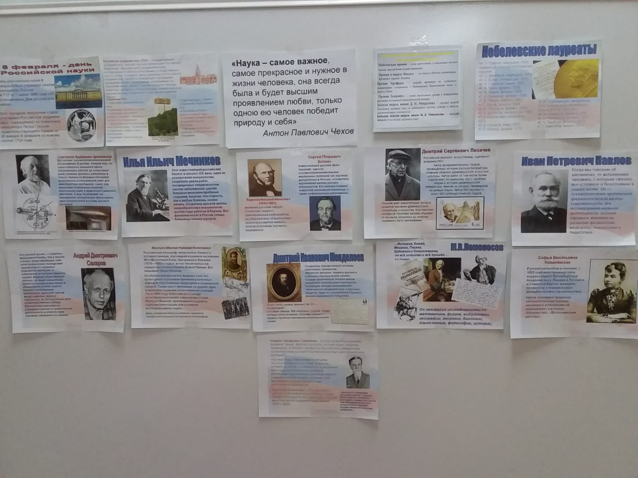 Учителем физики Мустаевой Екатериной Ивановной 8 февраля оформлен информационный стенд, посвященный Дню российской науки. Установлен в день подписания Петром Первым Указа об основании в России Академии наук. Отмечается с 2000 г.