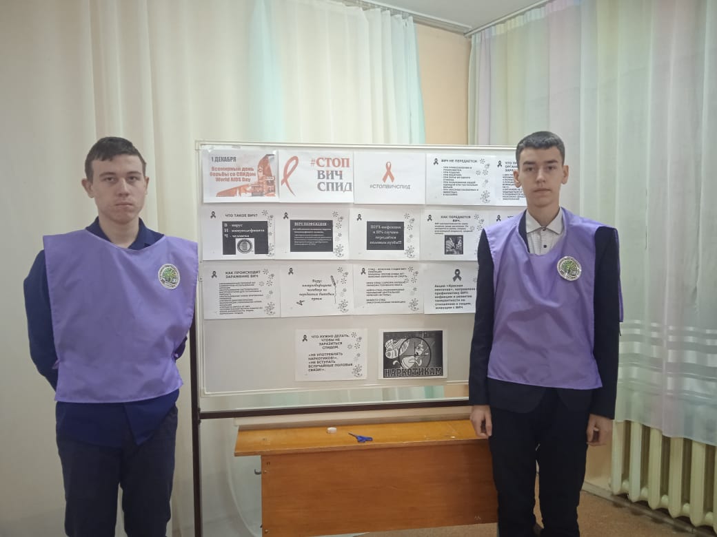 1 декабря школьным отрядом профилактики правонарушений был оформлен информационный стенд, посвященный Всемирному дню борьбы со СПИДом. Целью Всемирного дня борьбы против СПИДа, который ежегодно отмечается 1 декабря, является повышение глобальной осведомленности о ВИЧ/СПИДе и демонстрация международной солидарности перед лицом пандемии.