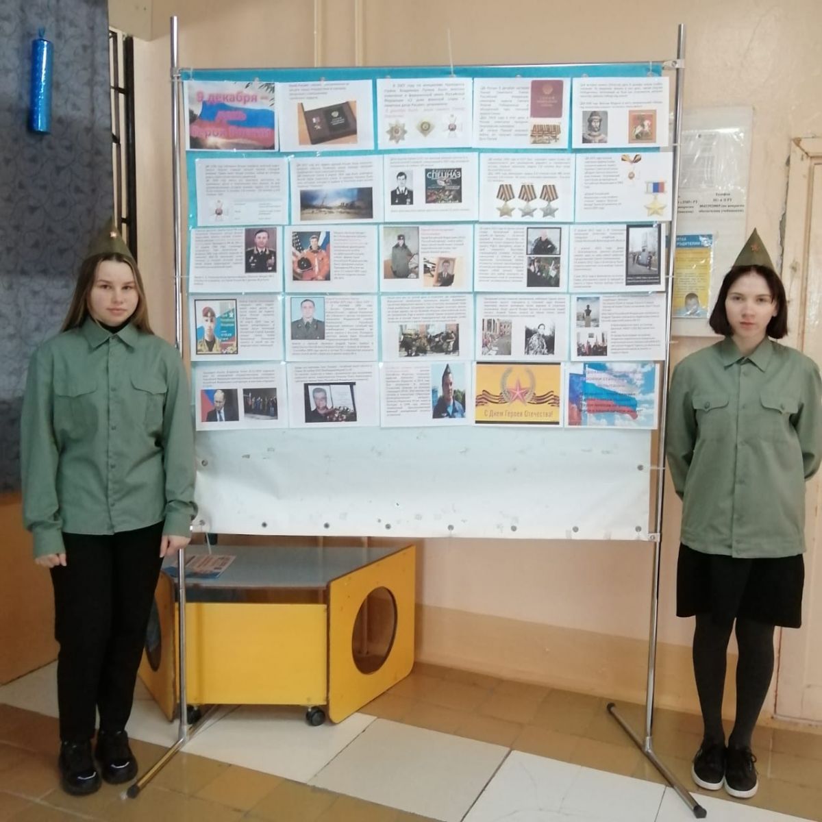 Школьным отрядом Юнармия был оформлен информационный стенд, посвященный Дню Героев Отечества.
