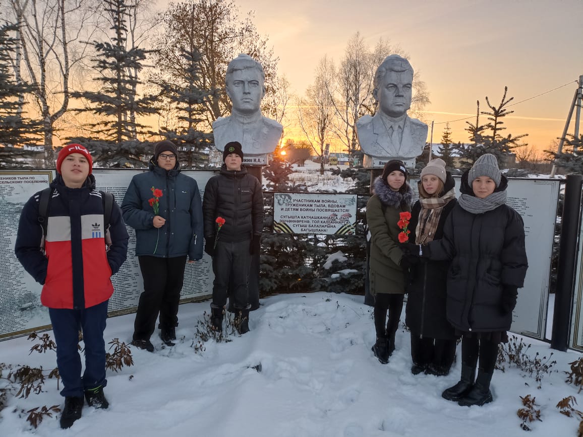 3 декабря учащиеся школьного отряда Юнармия возложили цветы к памятнику героев ВОВ и труженикам тыла, который находится в центре села. Данная акция проводится учащимися ежегодно. Мы должны помнить имена тех, кто отдал свои жизни ради нашего светлого мирного неба.