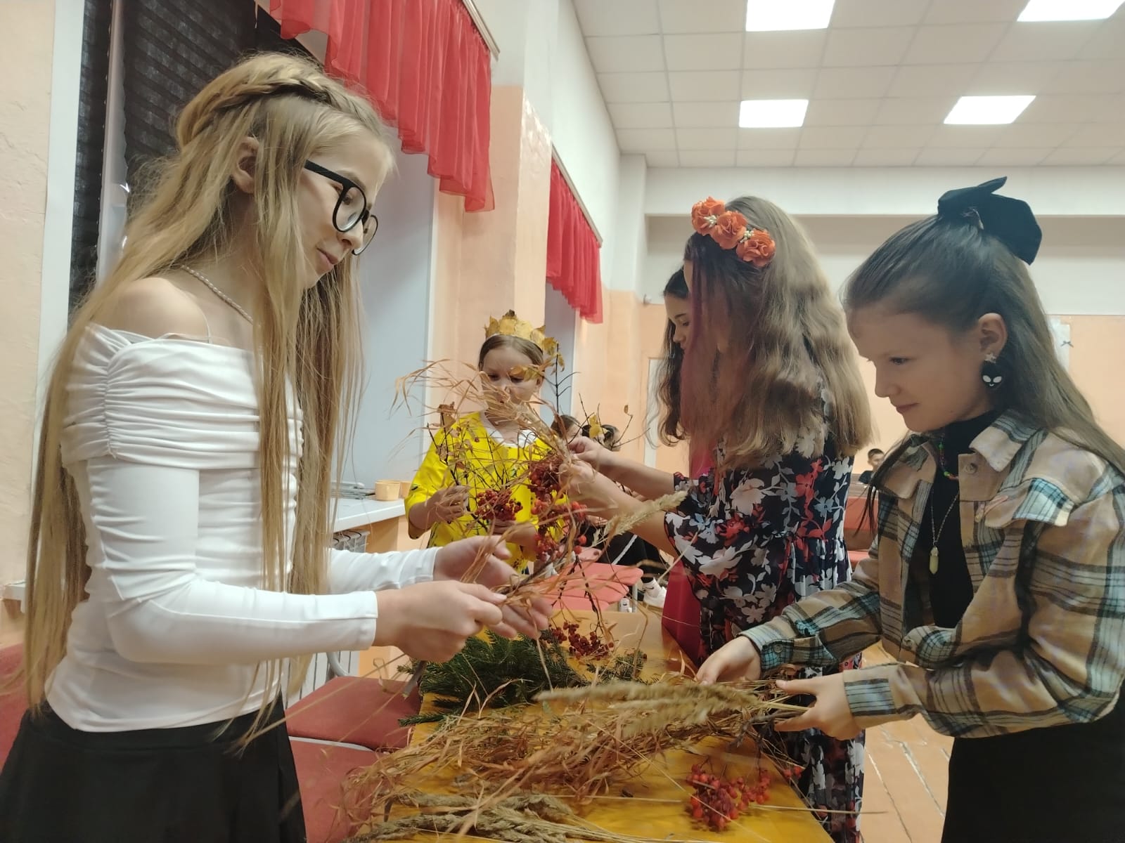 В нашей школе состоялся яркий и запоминающийся Осенний бал для учеников 5-7 классов. Праздник начался с поэтической ноты: семиклассники задали тон мероприятию, прочитав трогательные стихи об осени. Кульминацией стал конкурс для девочек «Принцессы», где участницы продемонстрировали свои таланты: они виртуозно создавали осенние букеты, делали элегантные причёски, с искусством повязывали шарфы мальчикам и рисовали живописные пейзажи.