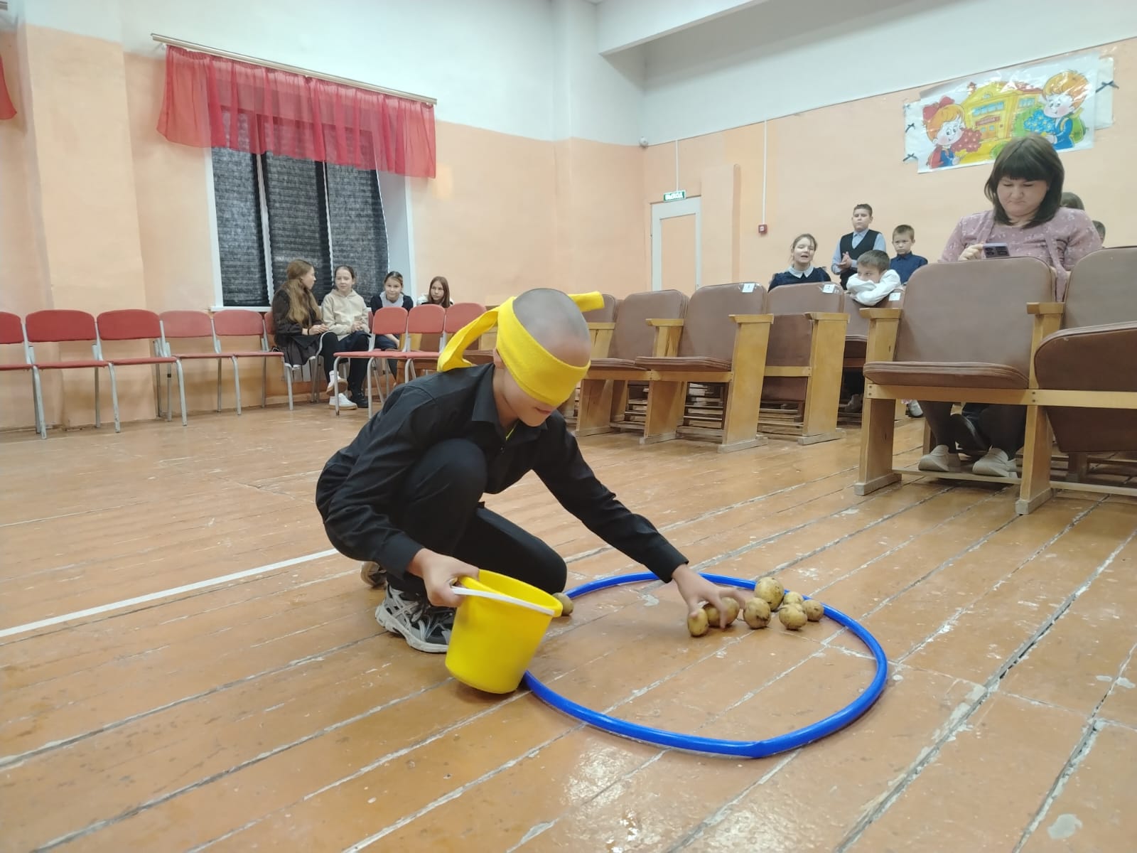 Пока «Принцессы» выполняли задания, для остальных зрителей в зале была организована своя программа. Ребята с азартом соревновались в скорости и ловкости, собирая «урожай картошки», и веселились, играя в «Крокодил».