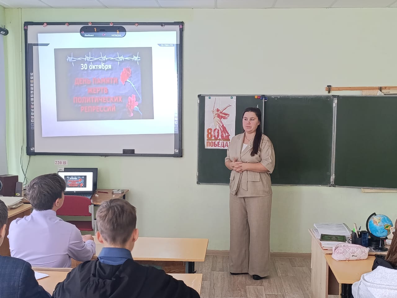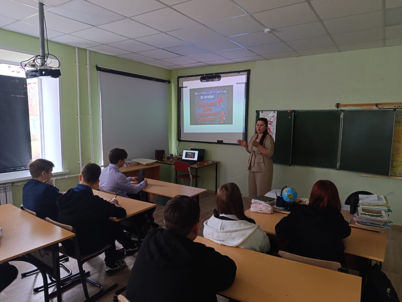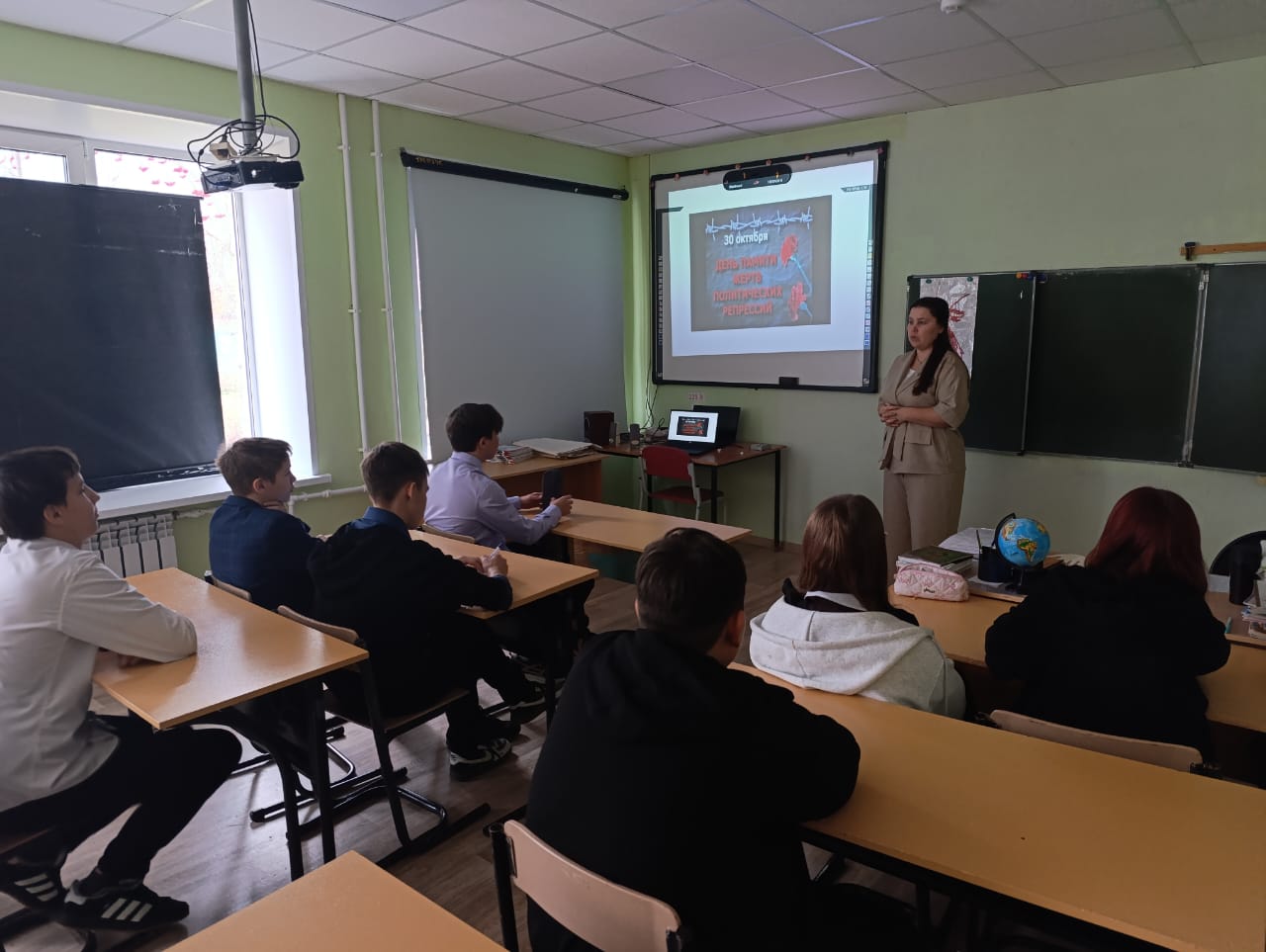 Сегодня ученики восьмого класса нашей школы приняли участие в особенном уроке истории, посвящённом Дню памяти жертв политических репрессий. Учитель истории Бобкова Евгения Юрьевна провела занятие, цель которого была напомнить подрастающему поколению о трагической странице прошлого нашей страны.