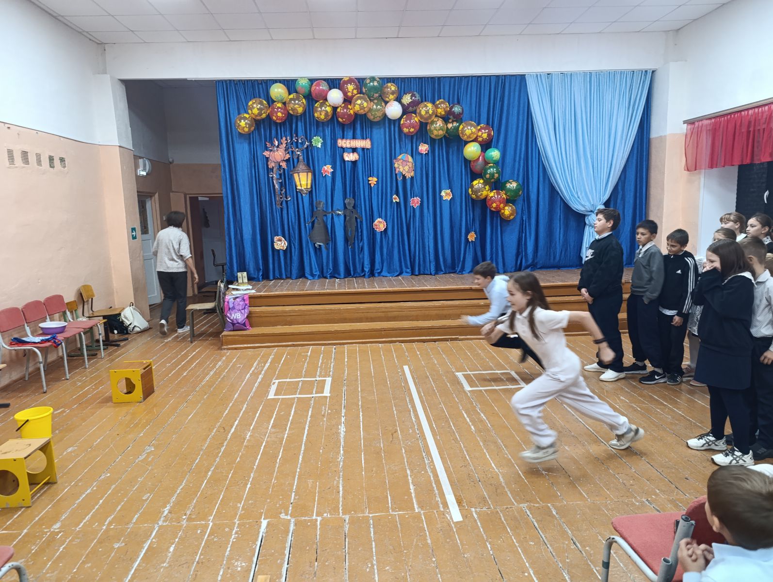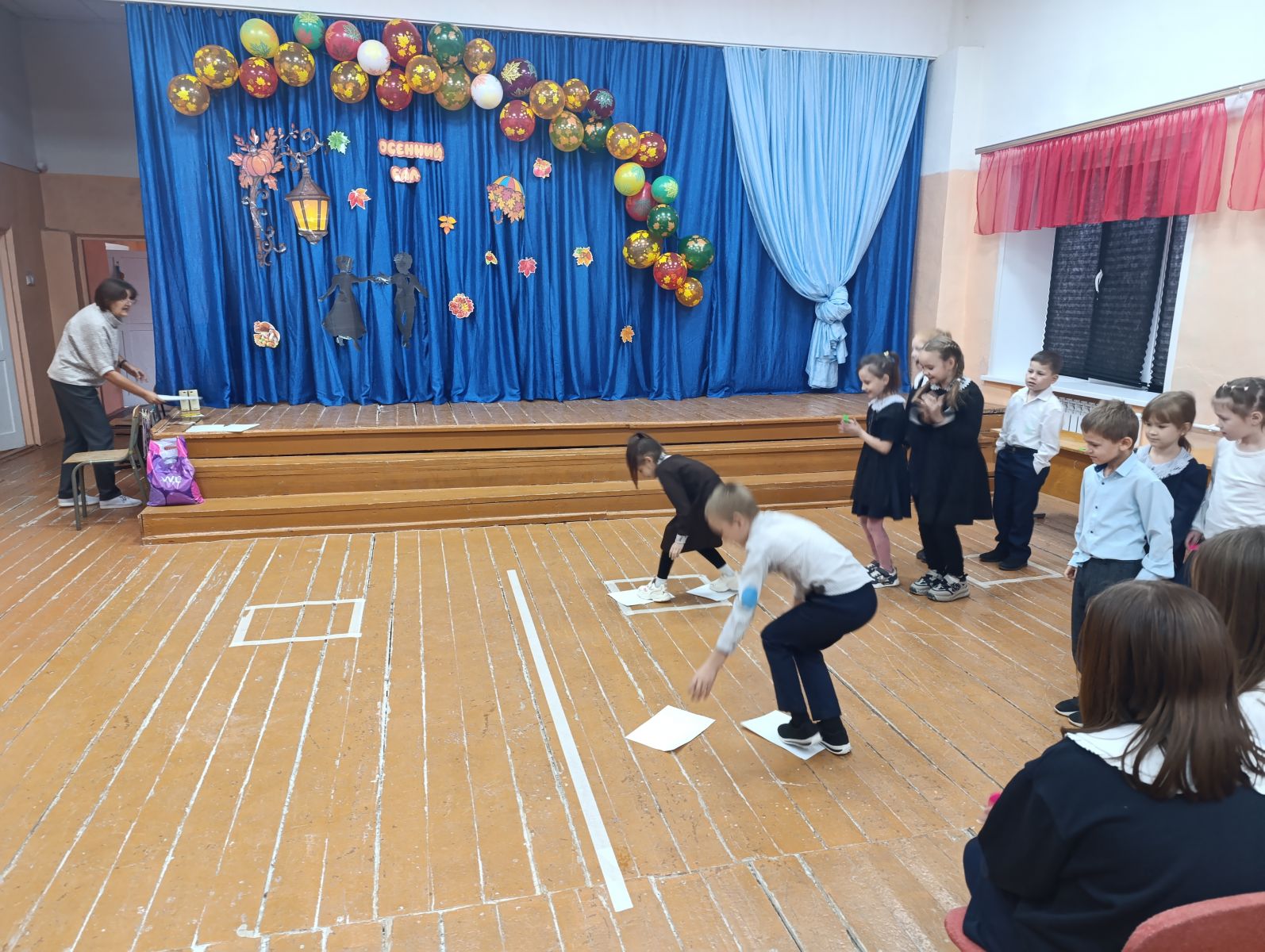 Яркий и веселый Осенний бал прошел для учеников начальной школы. Мероприятие, организованное для ребят с 1 по 4 класс, превратилось в настоящий праздник спортивного азарта и смекалки.