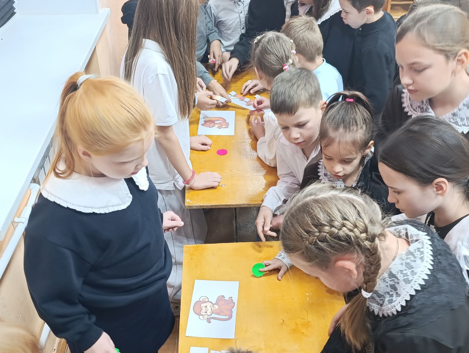 Ученики с энтузиазмом включились в соревнования. Они демонстрировали свою ловкость, нося воду в ложках, и проявляли командный дух, собирая большие осенние пазлы. Одним из самых запоминающихся моментов стала игра «Кенгуру», где ребята, подражая австралийским животным, переносили в сумках маленькие игрушки. Особый восторг вызвал конкурс, в котором нужно было найти спрятанные среди горы макарон сладкие сокровища. Все участники смогли проявить внимательность и скорость, а главное — получили заслуженные сладкие призы.