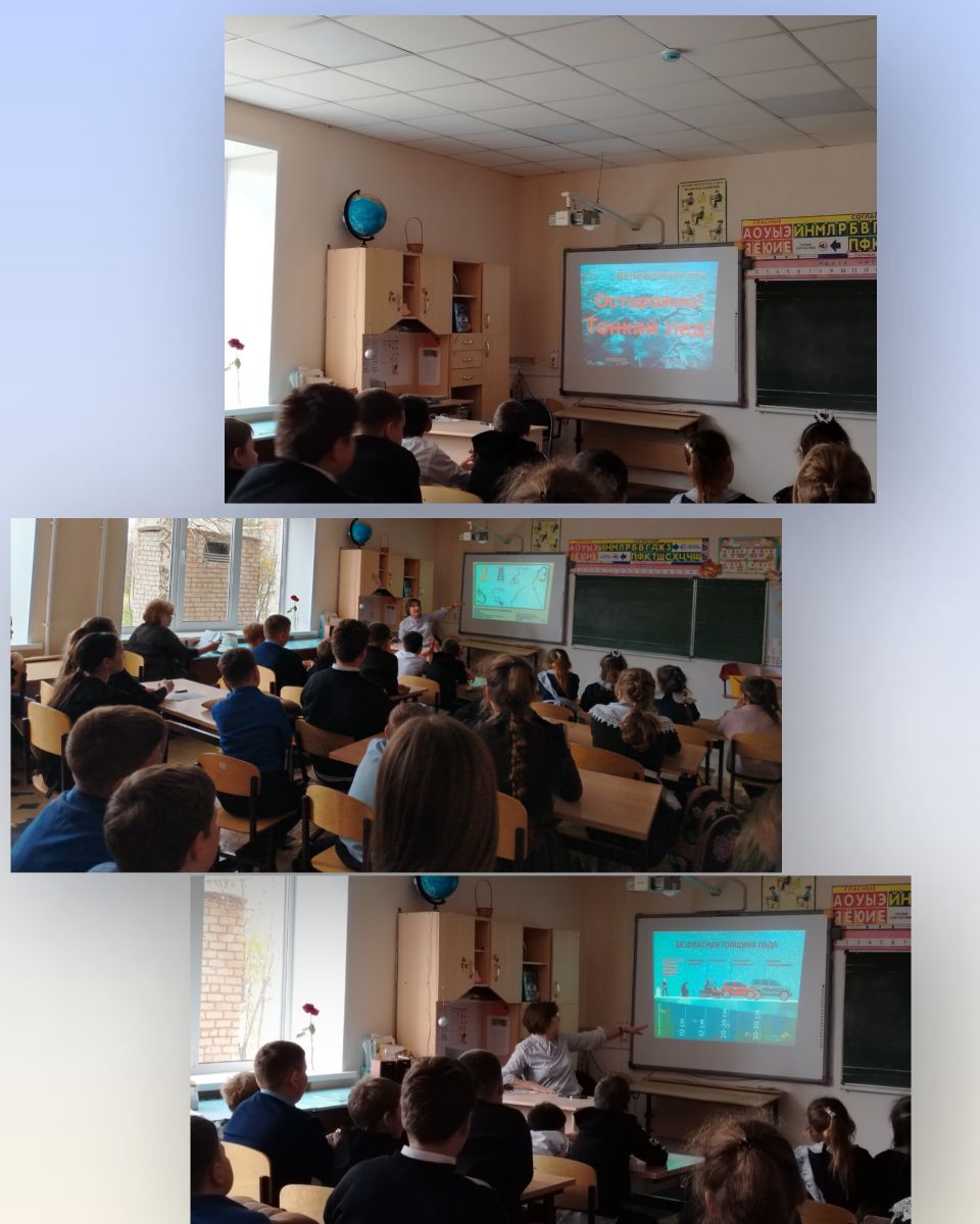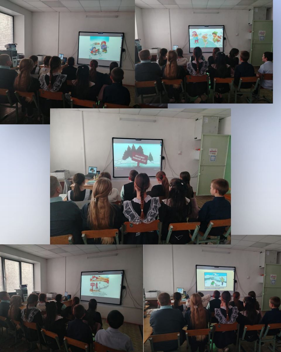 Кроме того, был оформлен информационный стенд с полезными советами и рекомендациями по безопасному поведению на льду. Для учеников 1-4 классов была проведена увлекательная викторина, где ребята смогли проверить свои знания о безопасности на водоемах.
