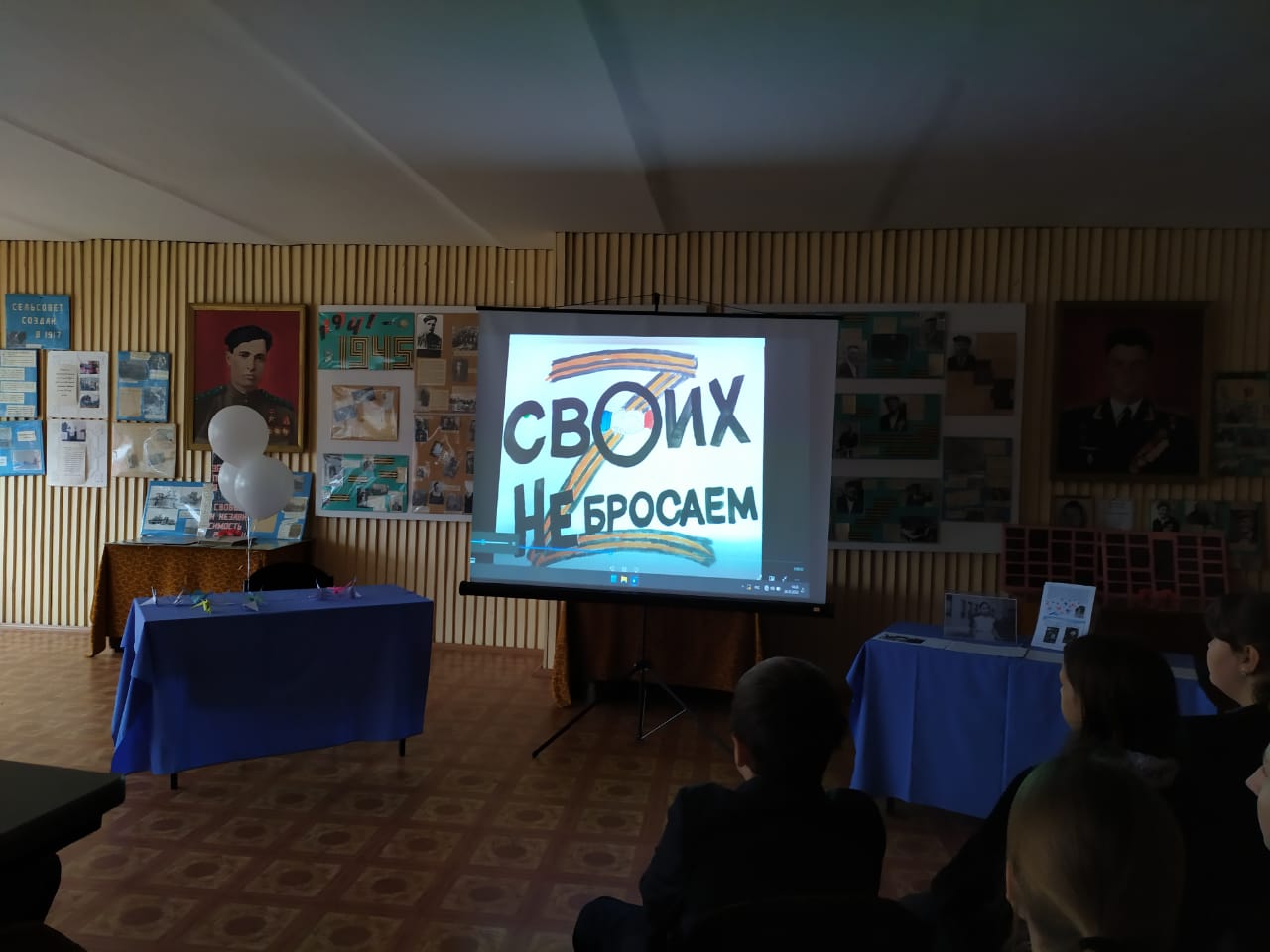 Ребята познакомились с рисунками, которые были нарисованы учащимися 1-5 классов в рамках акции «Своих не бросаем» и отправлены бойцам СВО. Мероприятие завершилось запуском в небо белых шаров с журавликами, которые являются символами дружбы всего мира.