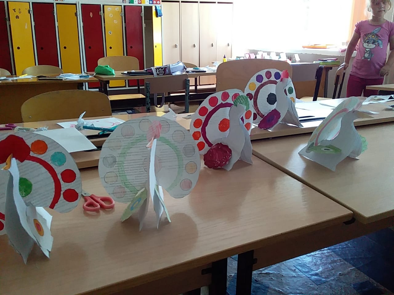 Потом дети получили маршрутный лист и «полетели» к «гнездам» (станциям). Самое первое «гнездо» - «Крылатые фантазии»: ребята складывали из бумаги голубя. В «Сказочном» гнезде участники вспомнили название произведений по изображениям, в которых главными героями являются наши пернатые друзья. Третье «гнездо» - «Поэтическое»: выразительно читали стихотворения про птиц. Затем «полетели» в «гнездо» «Загадалия», где дети отгадывали загадки. В «гнезде» «Знатоков пословиц» вспомнили пословицы и поговорки о птицах. Активно отвечали на вопросы викторины на последней станции «А, ну-ка, эрудиты!» На каждой станции участники игры получали фрагменты изображения, а затем сложили, и получилась удивительная «Птица счастья»!