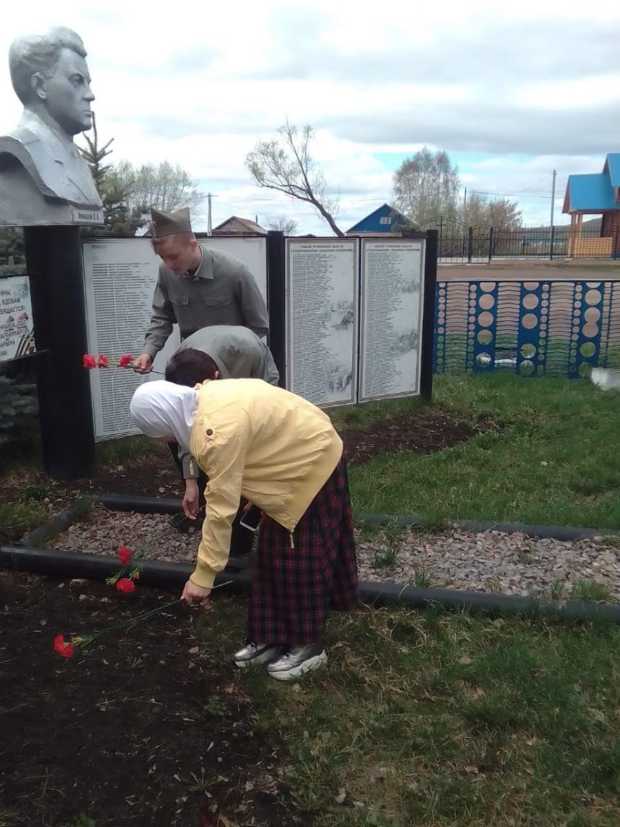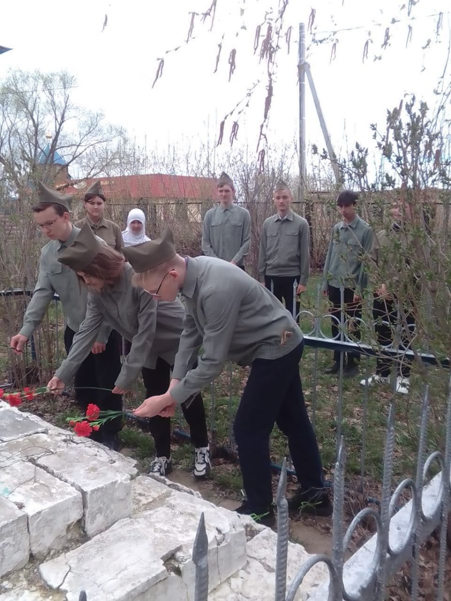В рамках Всероссийской добровольческой акции «Весенняя неделя добра» 27 апреля учащимися школьного отряда «Юнармия» под руководством учителя истории Трофимова Л.В. были возложены цветы к памятникам на территории нашего села.