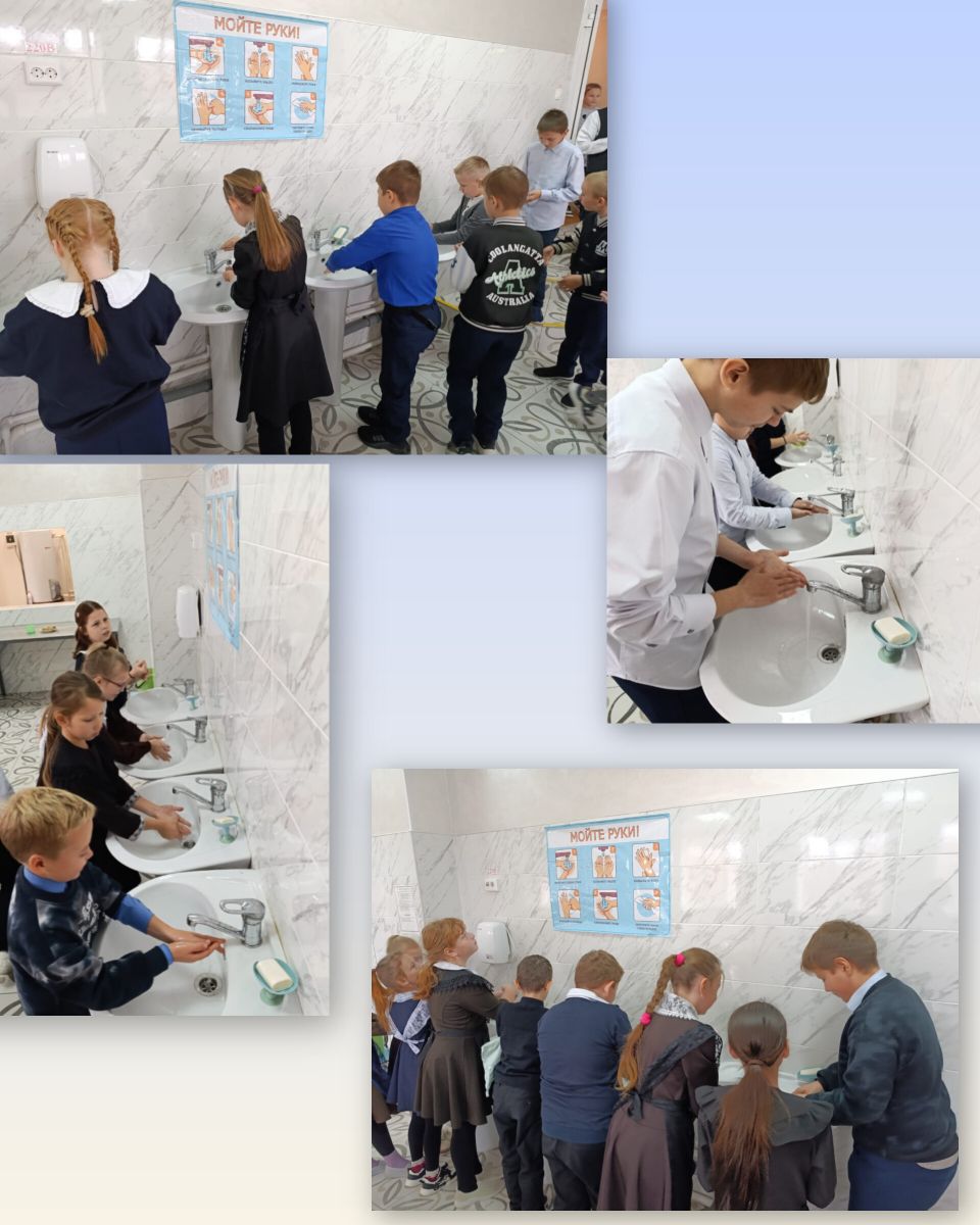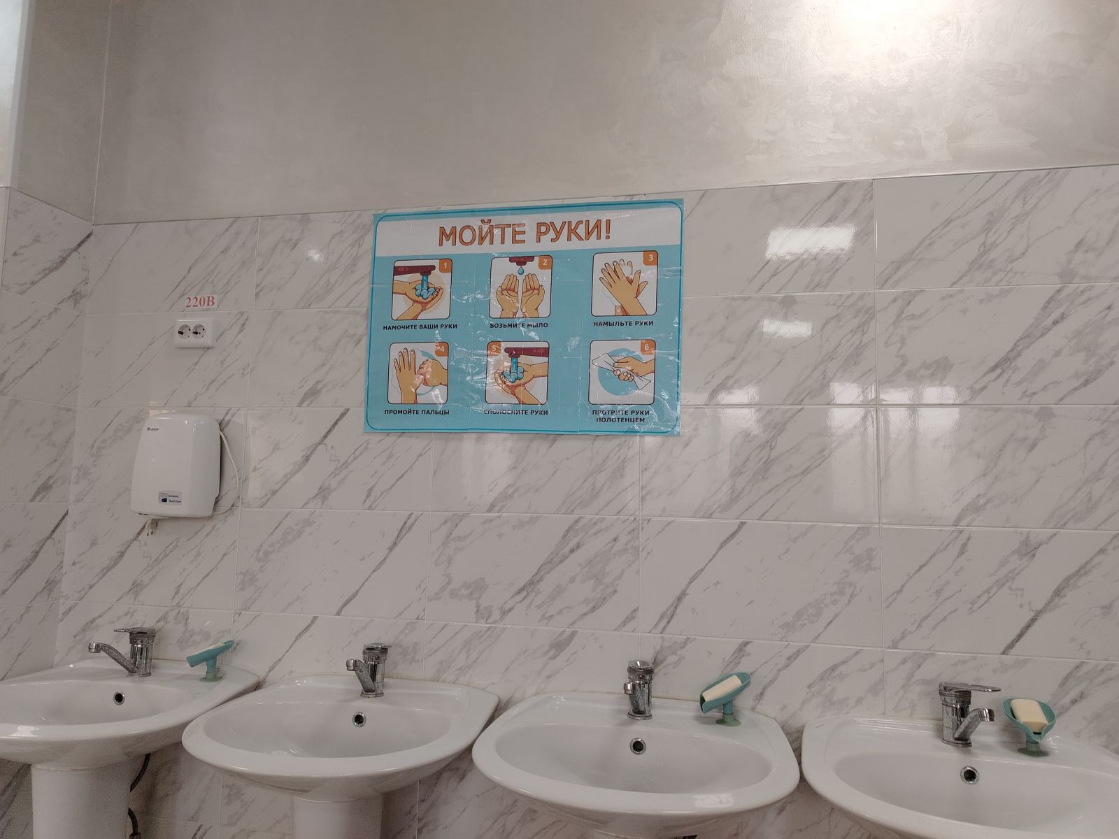 Учителя и старшеклассники активно следили за тем, чтобы дети не забывали о гигиене. В столовой были установлены яркие плакаты с правилами правильного мытья рук.