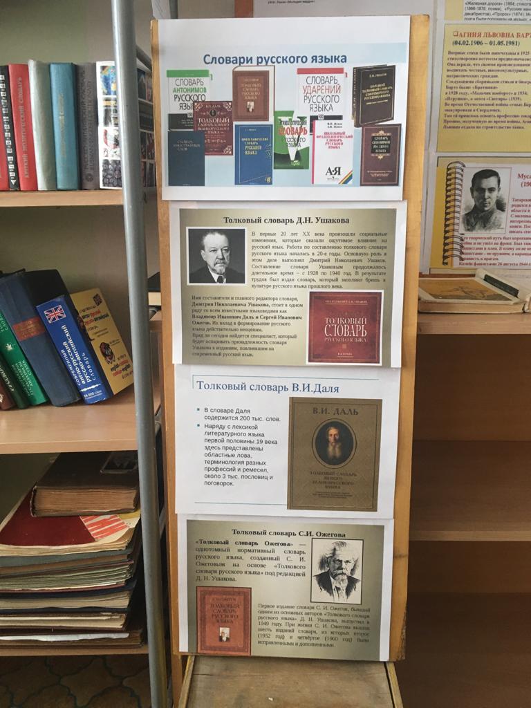 С 8 по 13 ноября в школьной библиотеке была оформлена выставка словарей. Ребята познакомились со словарями разных авторов, с их типологией.