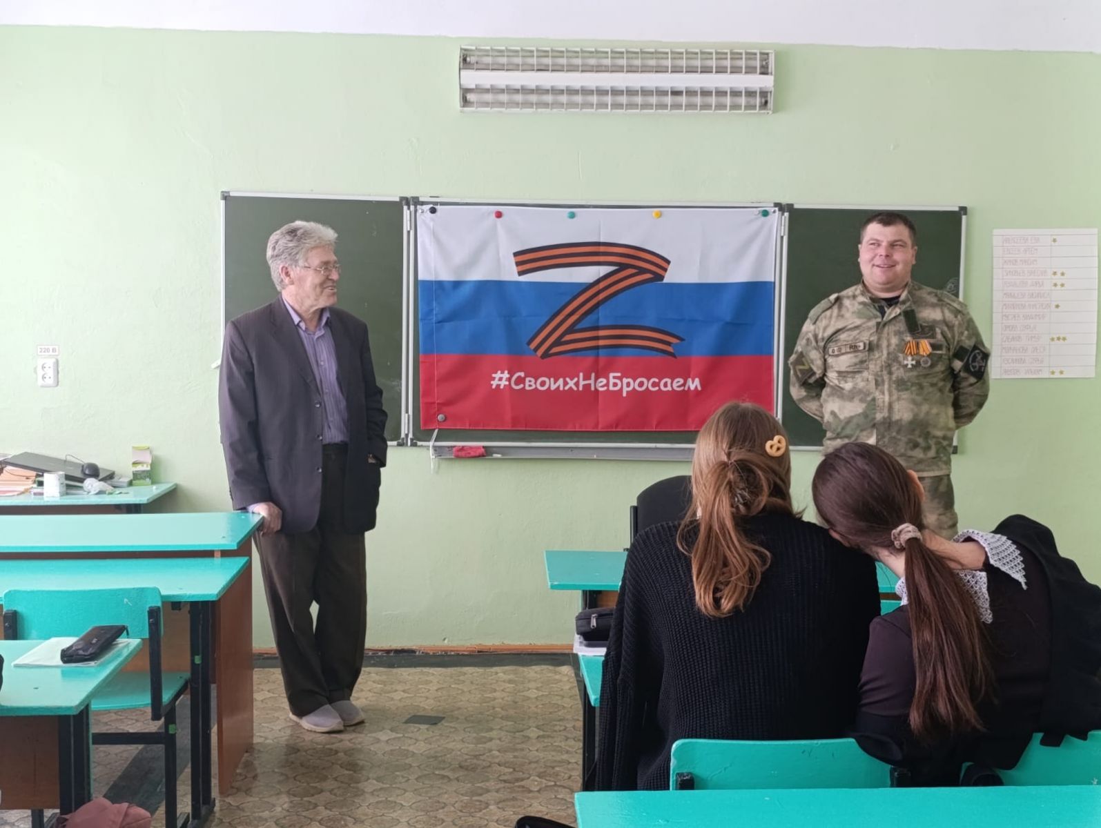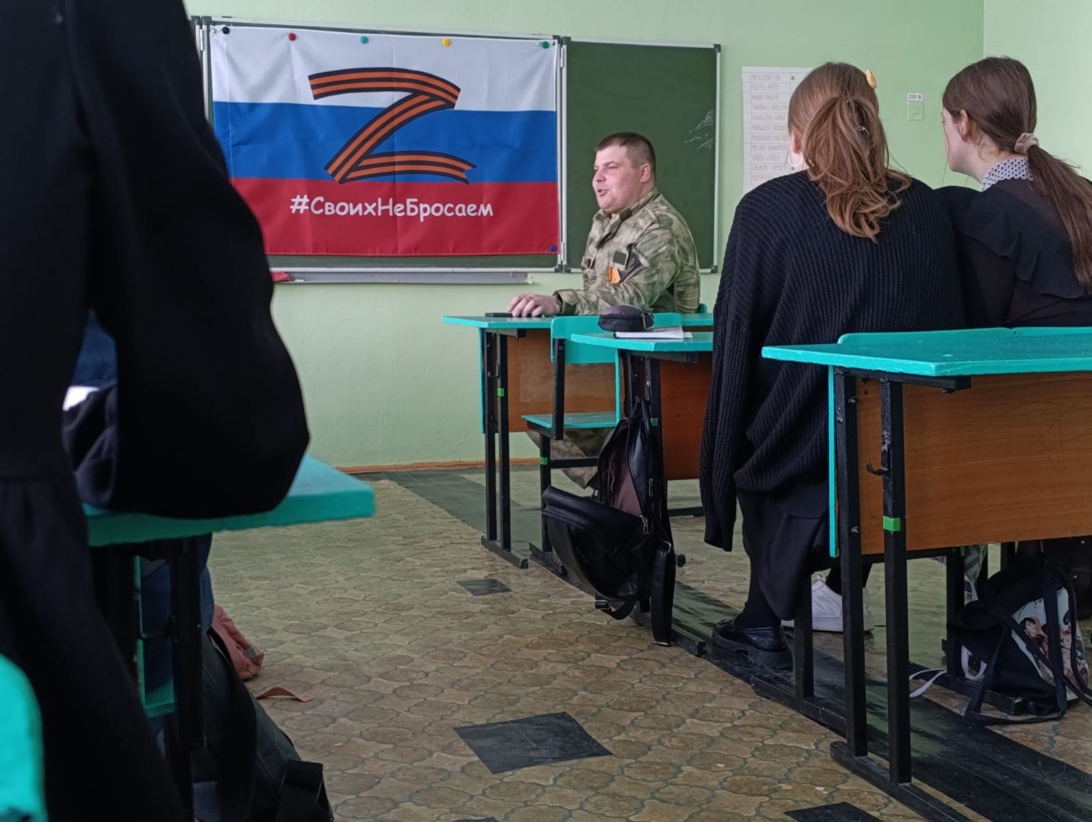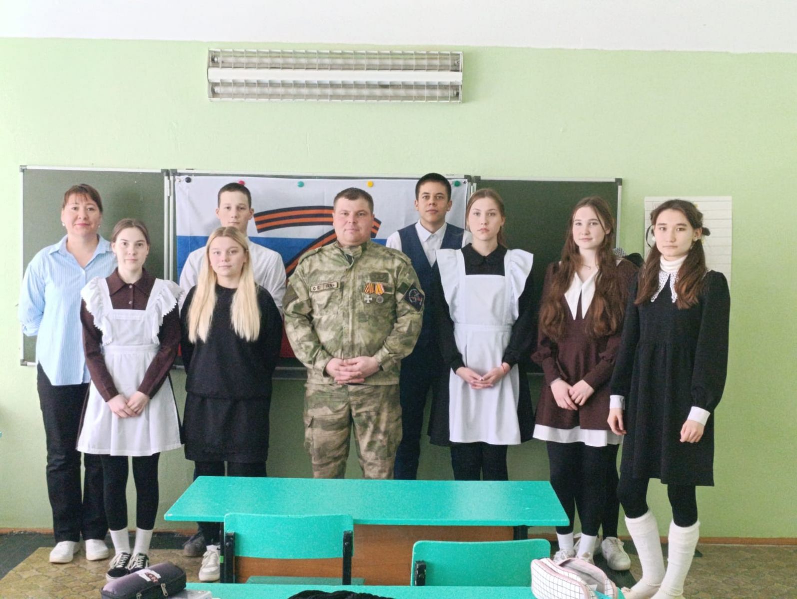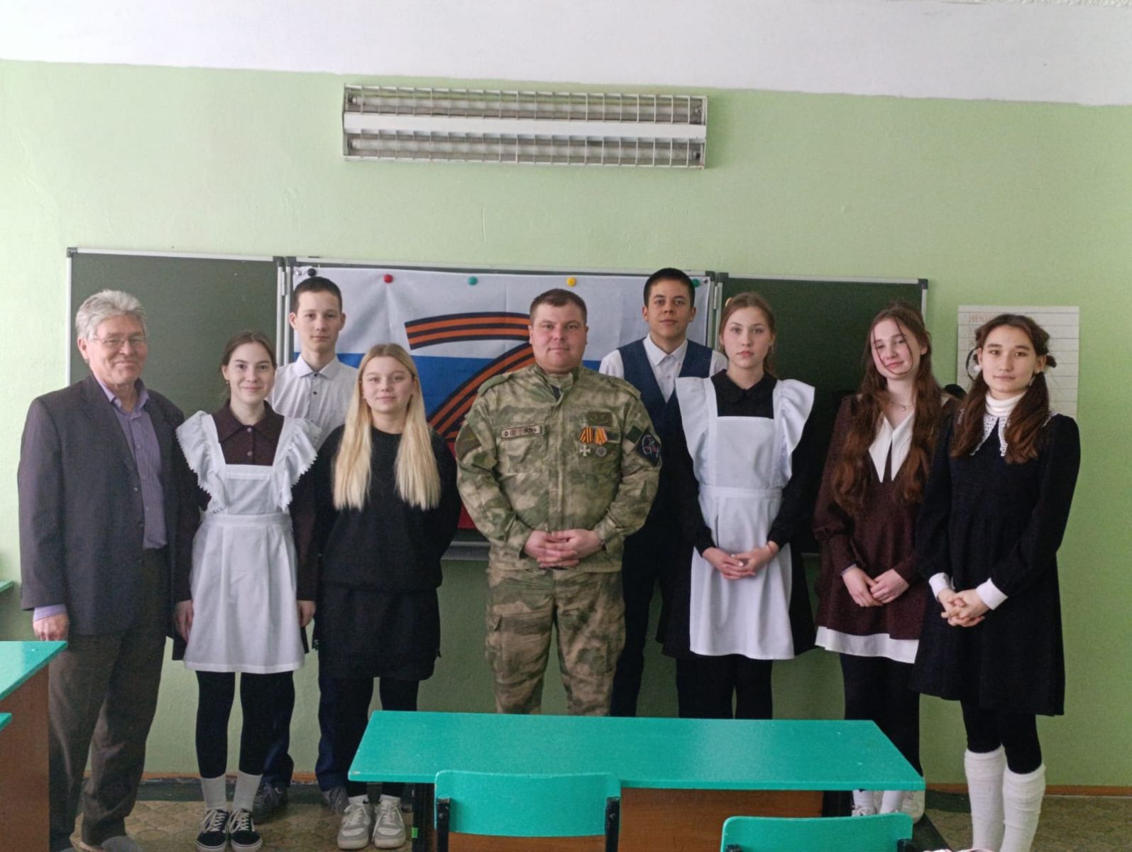 Александр рассказал почему принял решение служить Родине и какие испытания ему пришлось преодолеть. Рассказ вызвал у учеников большой интерес. Ребята задавали гостю много вопросов — о быте в условиях спецоперации, вооружении наших солдат, ведении боевых действий. На них боец отвечал предельно честно и открыто. Также ребята поинтересовались, помогают ли письма школьников, отправленные участникам спецоперации. Встреча прошла весело, и пролетела очень быстро.