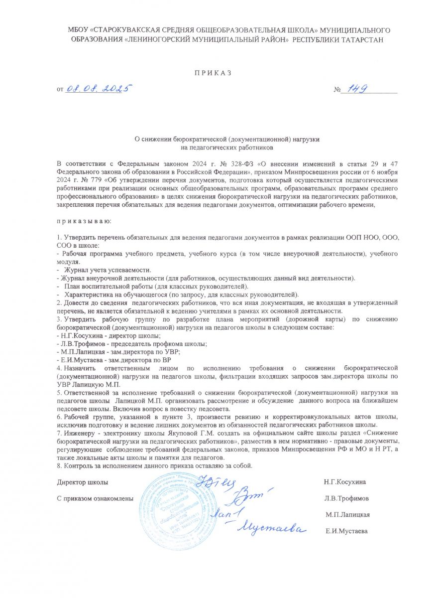 С 1 марта 2025 года в России вступил в силу Федеральный закон от 08.08.2024 № 328-ФЗ "О внесении изменений в статьи 29 и 47 Федерального закона "Об образовании в Российской Федерации", существенно снижающий бюрократическую нагрузку на учителей, утвердив перечень из пяти основных документов, которые они обязаны вести.Также запрещено дублировать электронный документооборот в бумажном виде и предоставлять информацию сверх законодательно установленного перечня.
