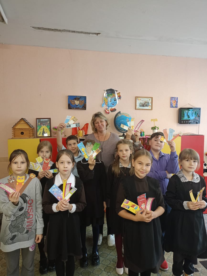 Советник директора по воспитанию в честь Международного дня школьных библиотек провела в нашей школе акцию «На страницах любимых книг». Ребята начальных классов изготовили для своих учебников и книг креативные закладки. Узнали об их пользе и истории появления.