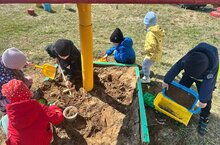 Каждый ребенок, попадая в песочницу начинает строить причудливые замки, пещеры, города. Он получает огромное удовольствие, стряпая «пирожки» или роя подземные ходы в песке. Этот процесс, подобно волшебству, увлекает ребенка. Поэтому, для воспитанников дет. сада было организовано развлечение «Строим замки из песка». Наши ребята с удовольствием принялись за дело. Они раскапывали ямки, насыпали холмики, рыли туннели, возводили башни, прокладывали дорогу и строили мостик. К своей постройки дети добавили для украшения природный материал, миниатюрные фигурки, игрушки и тогда у нас появился целый песочный город, в котором ожили сказочные герои