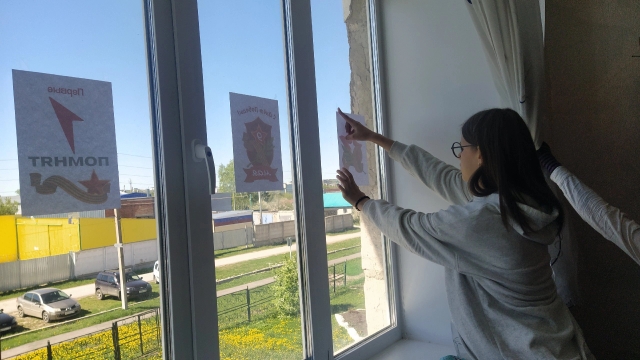 Также учащиеся из"Движения Первых" поддержали патриотическую акцию "Окна Победы', приуроченную ко Дню Победы.
