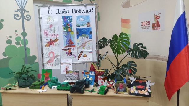 Опубликовано: 07.05.2025Накануне важного праздника -Дня Победы - в школе организовали выставку поделок и рисунков.