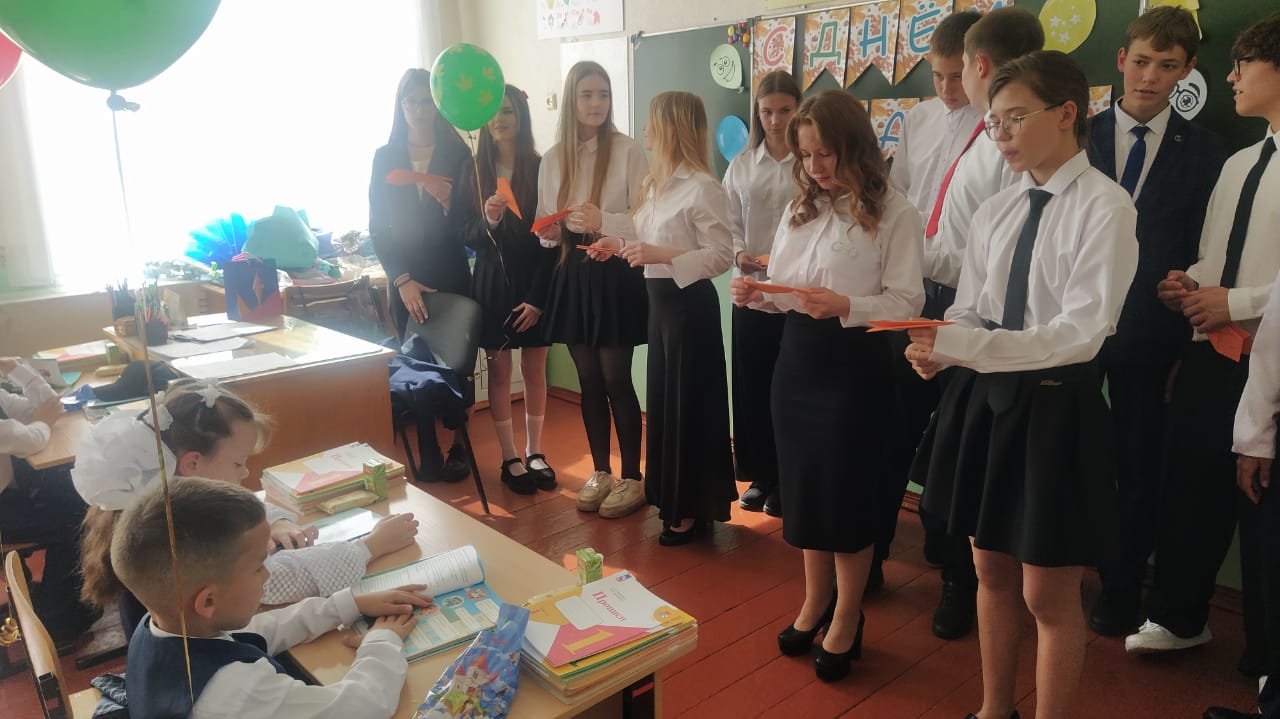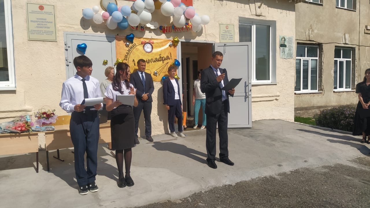 На празднике звучали поздравления, слова благодарности и пожелания. Перед присутствующими выступили заместитель руководителя исполкома муниципального образования г.Лениногорска Семенов С.Р., начальник управления СП" Татнефть"-ЛУТР Шигабутдинов А.С., выпускницы нашей школы 1979 и 1999 годов выпуска Кошкина Н.А. и Арсланова Г.А., которые пожелали ребятам успехов в учебе, поблагодарили коллектив школы и родителей. Первоклассники выступили со стихами, а затем выпускники вручили им подарки. Помимо этого, первоклашкам девятиклассники подарили самолетики с пожеланиями, которые ребята изготовили заранее. На первом занятии "Разговоры о важном" выпускники прочитали малышам эти пожелания. Завершилась линейка традиционным первым звонком.