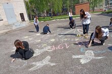 Сегодня во дворе нашей школы прошла акция «Рисунок на асфальте», посвящённая 80-летию Великой Победы.