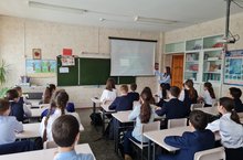 8 апреля 2021 года в 8в классе на базе школьной библиотеки был проведен Открытый урок «60-летие полета Юрия Гагарина в Космос»(руководитель Димиева Э.А.).