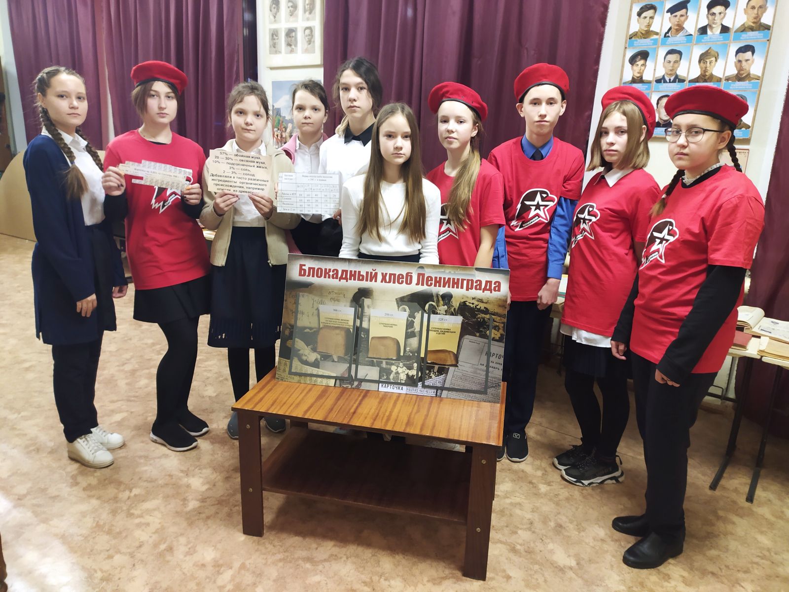 27 января 2021 года в рамках Дня воинской славы запланирована реализация Всероссийский акции ,,Блокадный хлеб". В связи с этим в нашей школе на базе музея (руководитель Димиева Э.А.) проводятся Уроки мужества ,,Блокадный хлеб Ленинграда".