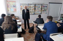 10 февраля в 8 А классе был проведен классный час, посвященный 75 годовщине Победы над фашизмом. На данное мероприятие был приглашен ветеран труда, Отличник народного образования, писатель, Почетный гражданин города Лениногорска, член совета ветеранов Степанов Николай Николаевич