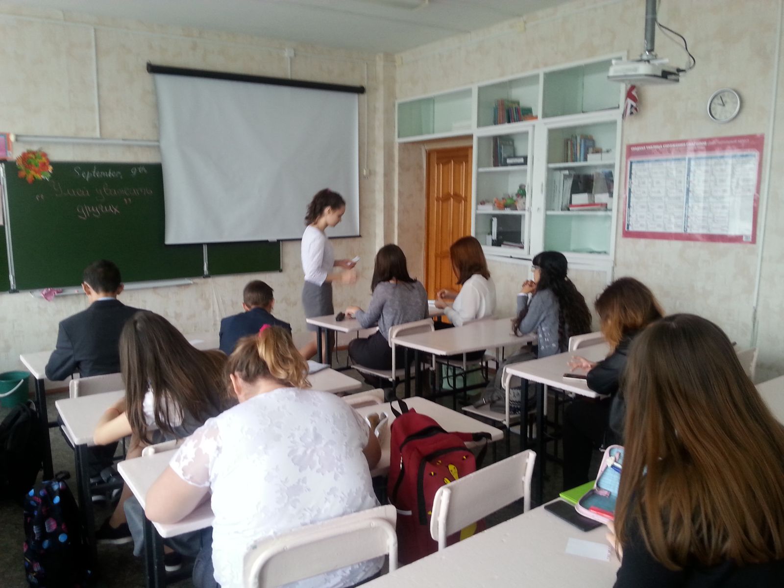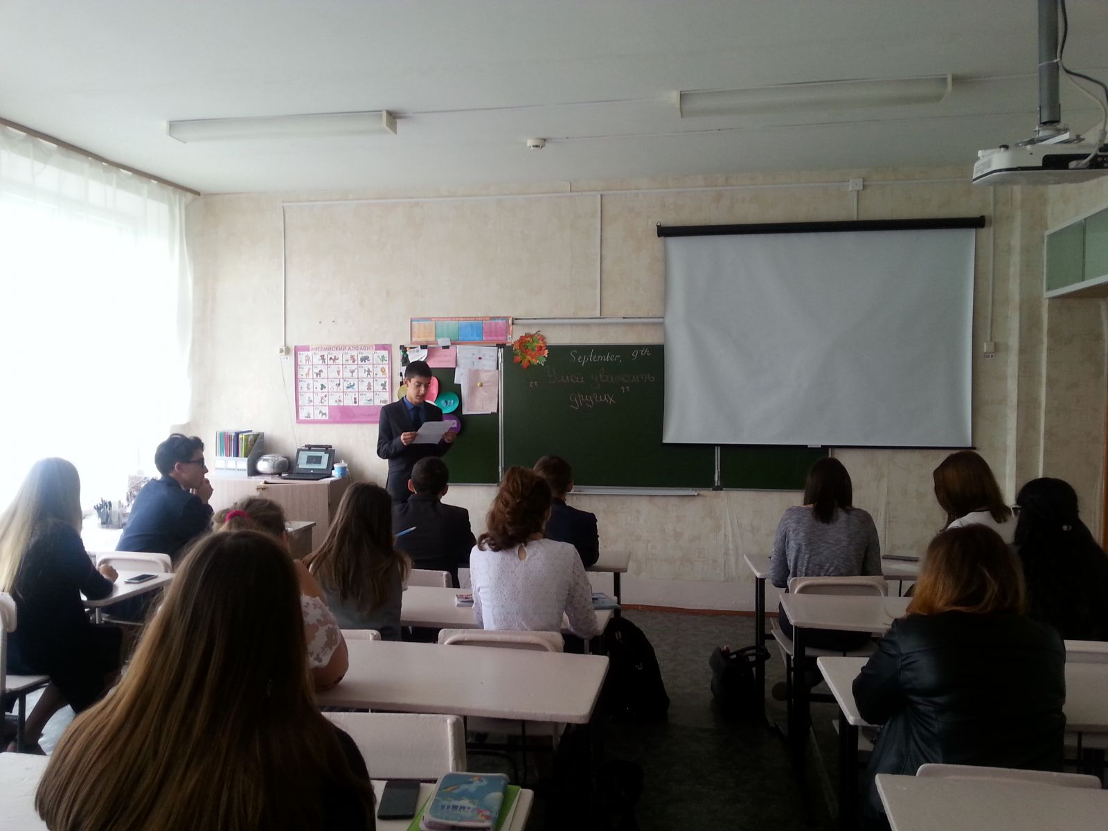 Опубликовано: 09.09.20179 сентября в 10А классе ребятами Шамситдиновой Э., Ахметзяновым И., Фаткулиным И. и Нуртдиновой А. был проведен классный час на тему: «Умей уважать других». Ребята дали определения понятию «уважение», привели примеры ситуаций пренебрежения и неуважения других, провели опрос среди одноклассников, за какое нравственное качество, с их точки зрения, люди заслуживают уважение. А в завершении, в качестве напутствия, были зачитаны изречения В.Г.Белинского, Ф.М.Достоевского, И.Гете, В.Шекспира, М.Монтеня.