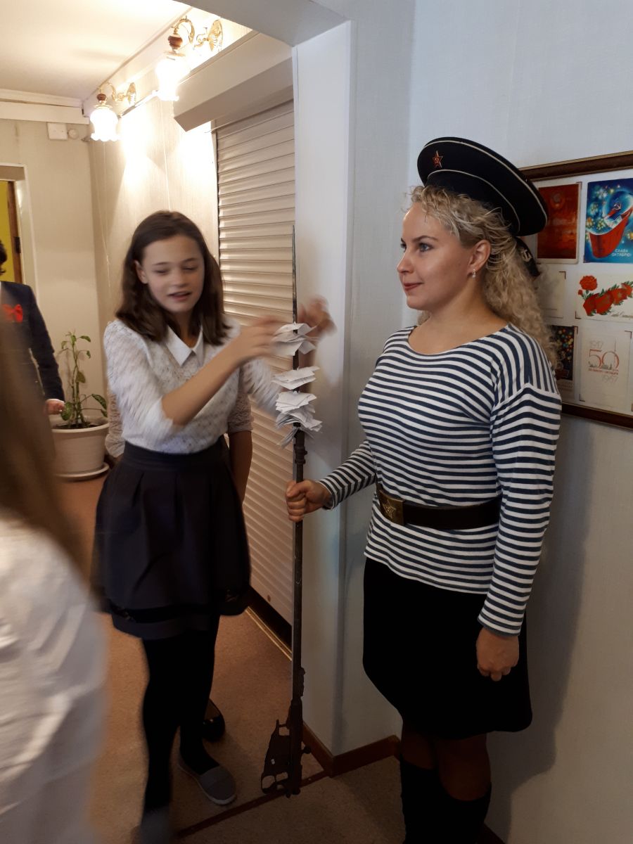 Учащиеся юнармейцы 7 б класса посетили выставку- открытие. Уже на входе посетителей встречал революционный матрос, принимая входные мандаты. Ребята активно включились в «Мозговой революционный штурм», разбирались в словах, ставших анахронизмами, сочиняли стихи в стиле В. Маяковского. Познавательно было знакомство с архивными документами из фондов Лениногорского краеведческого музея. В ходе мероприятия стало понятно, как много незнакомо нынешней молодежи из того, что когда-то было историей Советской страны. Встреча с революционным прошлым прошла увлекательно и информативно.