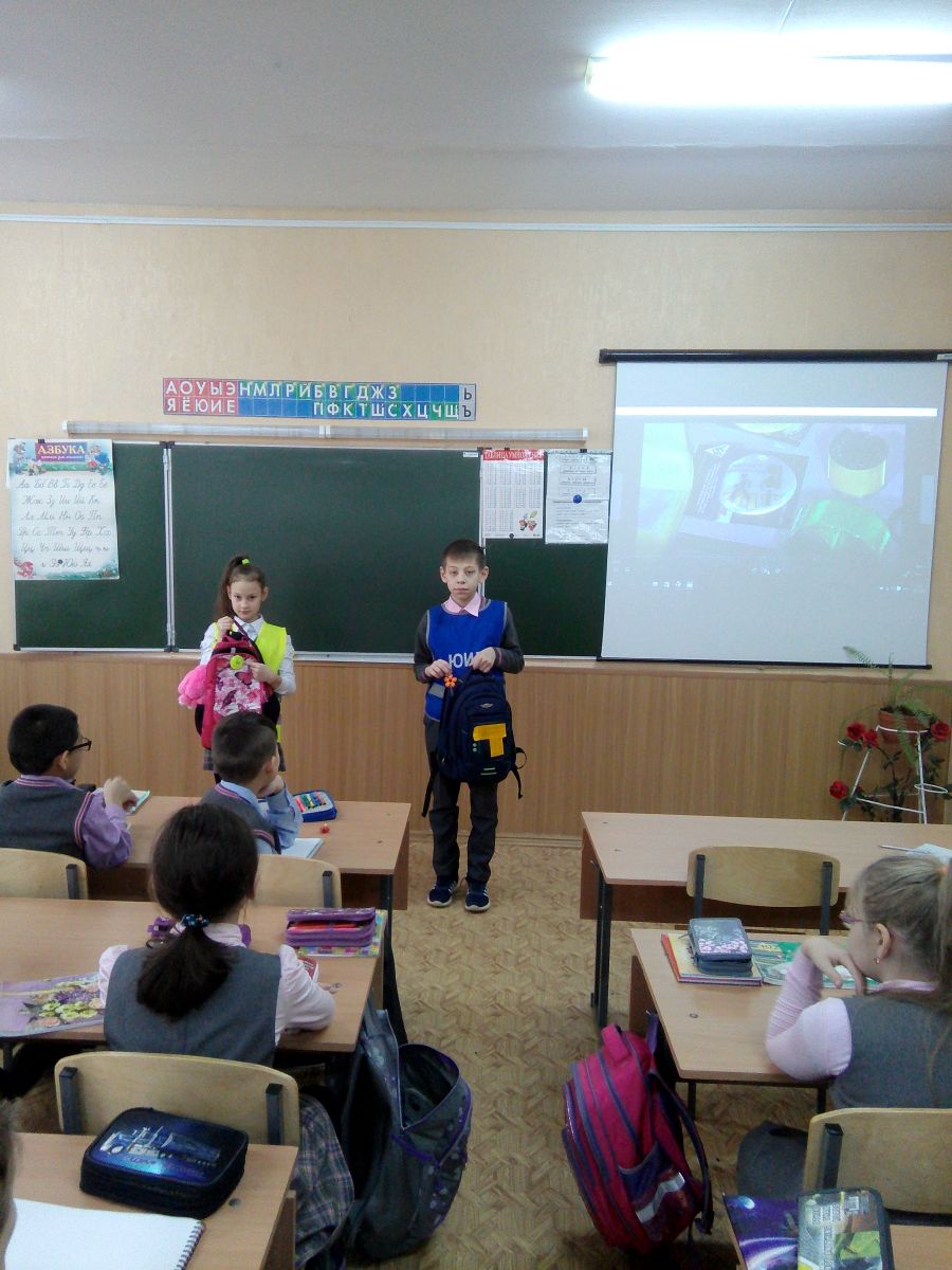 В ходе классного часа был осуществлен просмотр фильма «Ночной пешеход». Далее дети демонстрировали имеющиеся светоотражающие элементы, сопровождая правилами их предназначения.