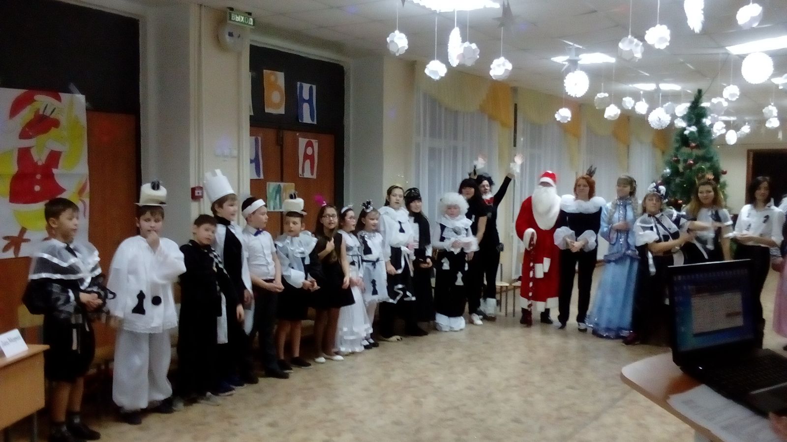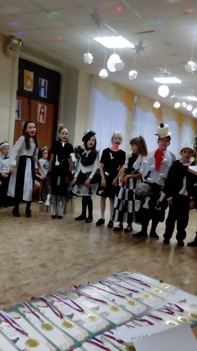 Опубликовано: 23.12.201723 декабря 2017 года в 4А классе МБОУ «СОШ №10» прошел новогодний КВН. В конкурсе участвовали 3 команды: 2 команды учащихся и команда родителей. Все участники КВН были одеты в костюмы шахматных фигур. Дети и их родители соревновались в выполнении семи заданий: Приветствие, Конкурс Капитанов, Литературный, Музыкальный, Шахматная викторина, Кулинарная викторина, Домашнее задание. Для каждой команды были предложены загадки, ребусы, задания. Конкурс прошел весело и задорно, детям очень понравилось Победила дружба!