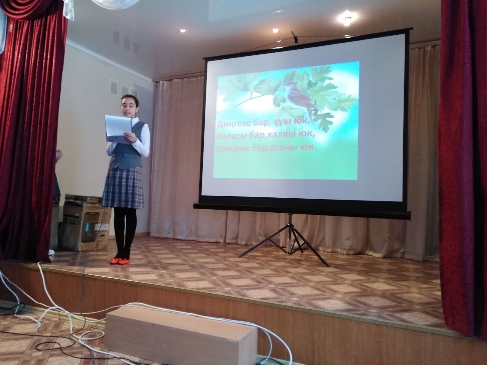 Мәктәбебездә әлеге бәйрәм 21 нче февраль көнне дәрестән тыш чараларга бик бай булды. Бәйрәм иртәсе Ихсанова Р.Ә.тарафыннан әзерләнгән, 5 сыйныф укучылары катнашында кызыклы викторина белән башланып китте. Аннан Хөснетдинова Р. М, Шәйдуллина А. Б. тарафыннан оештырылган “Туган телем-дуслык теле” исемле әдәби музыкаль кичә белән дәвам итте. Кичәбез Роберт Миңнуллинның “Татарларым”дип аталган оран-поэма видеоязмасыннан башланып китте, укучылар татарлар язмышы тарихына, элеккеге заманга әйләнеп кайткан кебек булдылар. Телләр турында мәгълүмат тупладылар. Җырлы, матур чыгышларга үрелеп бер-бер артлы конкурс,табышмак һәм мәзәкләр, уеннар бу көнне ямь өстенә ямь генә өстәп торды. Барлык укучылар да бик актив катнаштылар, сертификатлар белән бүләкләнделәр. Бәйрәм азагында, барлык тамашачылар, укытучылар бергәләшеп, “Туган тел” җырын башкардылар. “Туган телем – дуслык теле” исемендәге әдәби кичә бик эчтәлекле, уңышлы узды. Барлык катнашучыларга да рәхмәт!