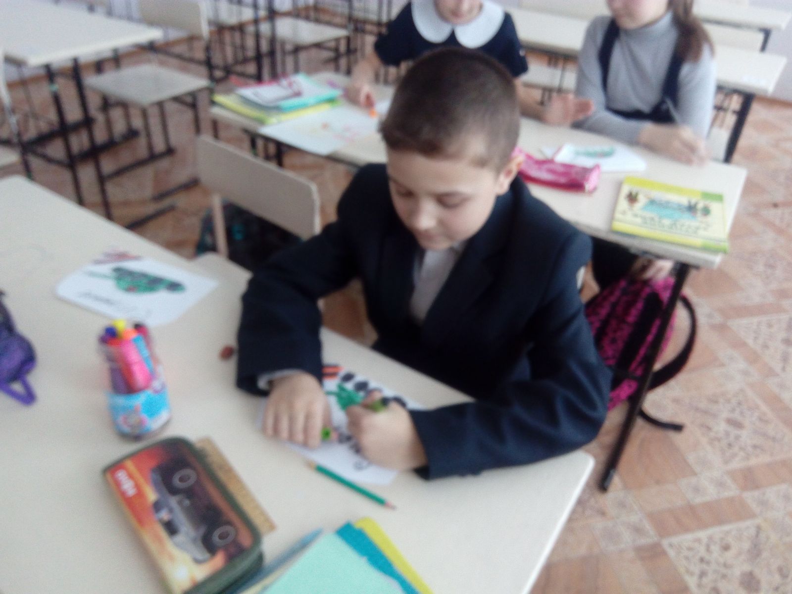 Учащиеся 1а и 3а класса приняли активное участие в конкурсе поделок и рисунков(организованном совместно клубом,,Ровесник")"Присягают Родине сыны...", посвященном Дню защитника Отечества.