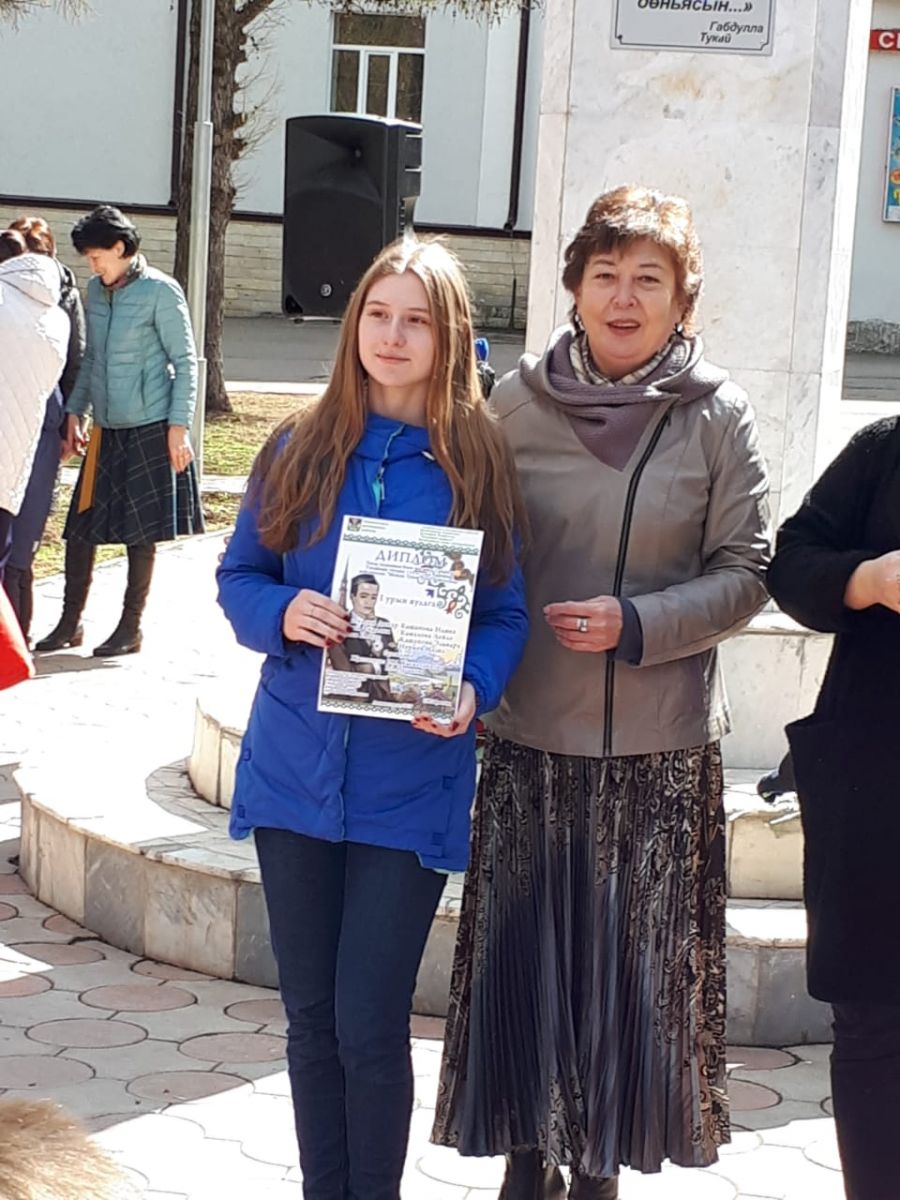 26 нчы апрель – Г.Тукайның туган көнендә- театр бәйгесендә катнашучы укучылар районкүләм оештырылган Г.Тукайга багышланган шигырь кичәсендә катнаштылар. Алар анда «Лениногорск муниципаль район» муниципаль берәмлеге башкарма комитеты “Мәдәният идарәсе” муниципаль казна учреждениесе җитәкчесе Г.Х.Зарипова кулыннан 1нче урын диплом белән бүләкләнделәр.