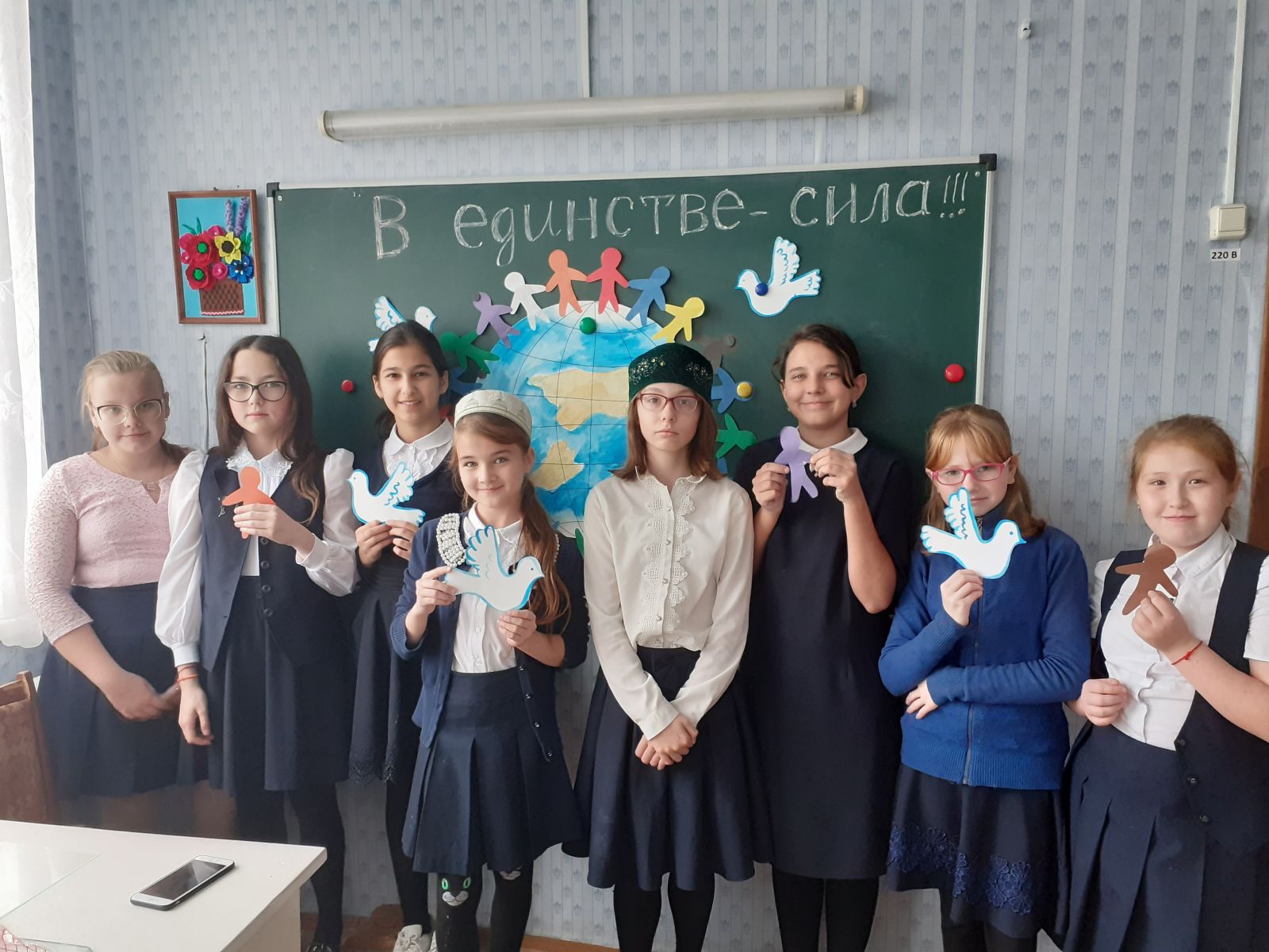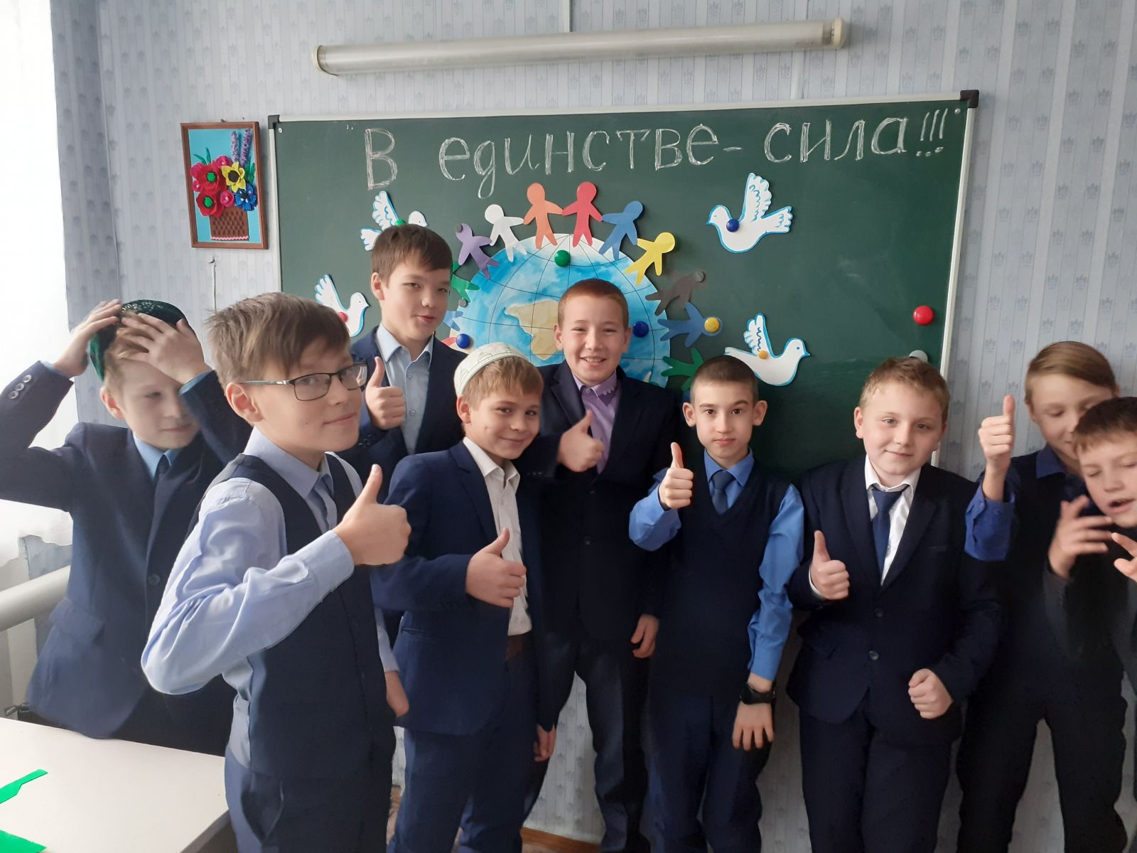 29.10.19 в 5 "Б" классе прошел классный час , посвященный дню народного единства . Классный руководитель Валиуллина Э.Ф. познакомила ребят с основным содержанием праздника 4 ноября , рассказала о значении праздника, истории его возникновения и символике нашего государства . Ученики с удовольствием приняли участие в подвижных играх ("Тюбетейка" , " Горелки") . Итогом мероприятия стал мастер -класс по изготовлению макета земного шара.