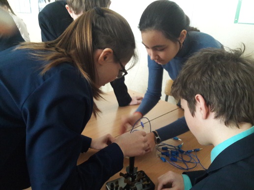 Участники игры: пять команд по 4 человека 8А класса: «Сила», «Энергия», «220 вольт», «Высокое напряжение» и «Знатоки физики». Во время конкурса знатоки физических законов и приборов рассказывали о назначении различных приборов, демонстрировали свои знания физики, применяемые в повседневной жизни, показывали наглядно законы механики, а также собирали на скорость электрический цепь и находили значение силы тока электрической лампочки. Победителем стала команда «Сила», капитаном которой была Шагвалиева Самира.