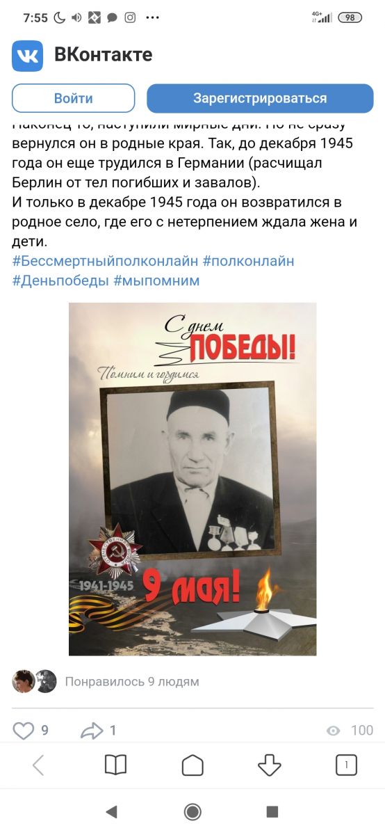 В этом году во всём мире и в нашей стране сложилась ситуация, когда скорее всего мы не сможем 9 мая пройти БЕССМЕРТНЫМ ПОЛКОМ по улицам наших города. Поэтому мы решили принять участие в онлайн-акции,,БЕССМЕРТНЫЙ ПОЛК".Ребята нашей школы (руководитель Димиева Э.А) подготовили фото и краткую информацию о своих родственниках-участниках материалы были размещены на страницах социальных сетей,,В контакте"и ,, Инстаграм"
