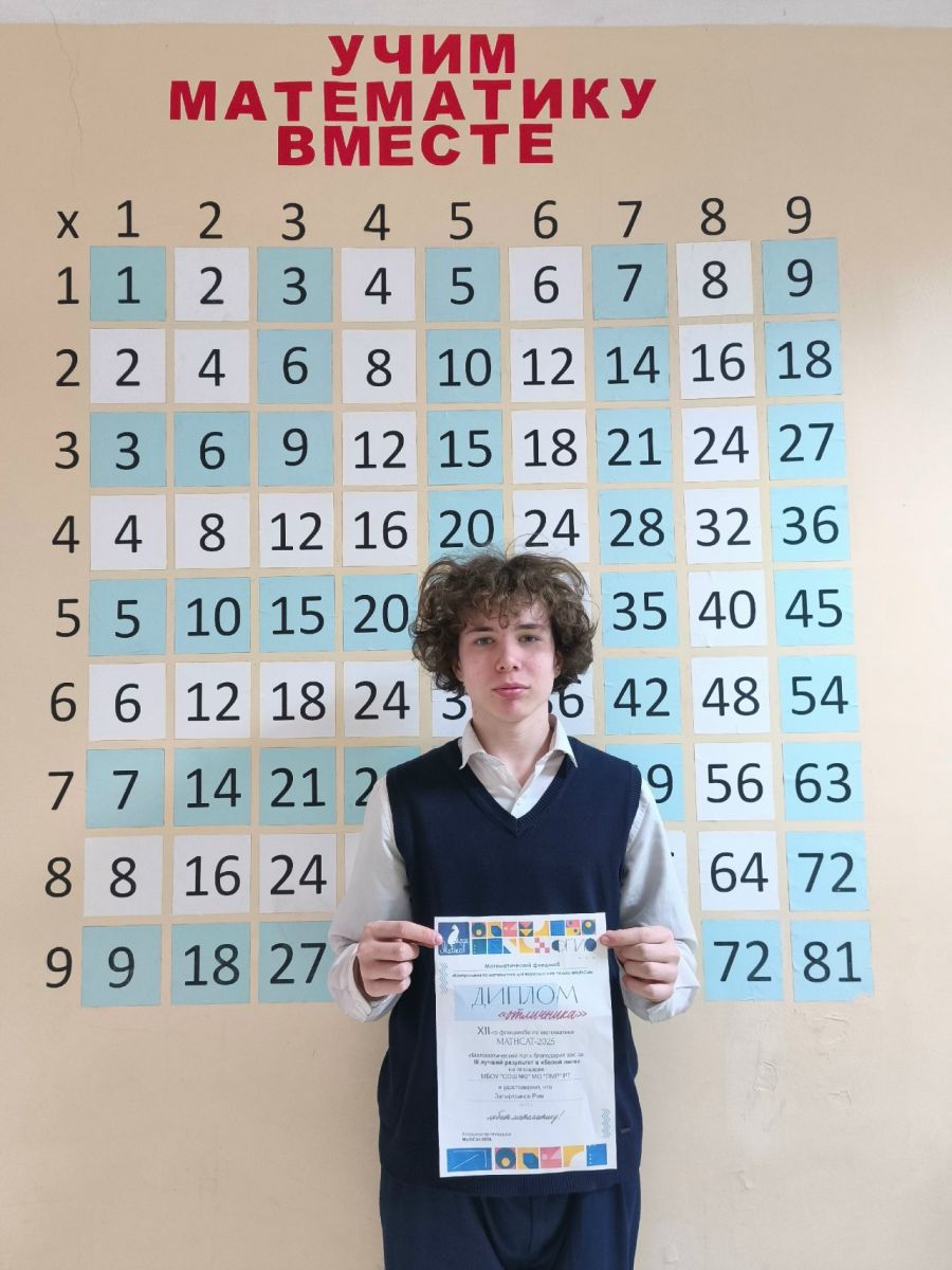 Поздравляем ученика 9 класса - Загыртдинова Рима с 3 местом на образовательно-развлекательном флешмобе по математике "MathCat 2025" прошедший на базе 2 школы 29 ноября