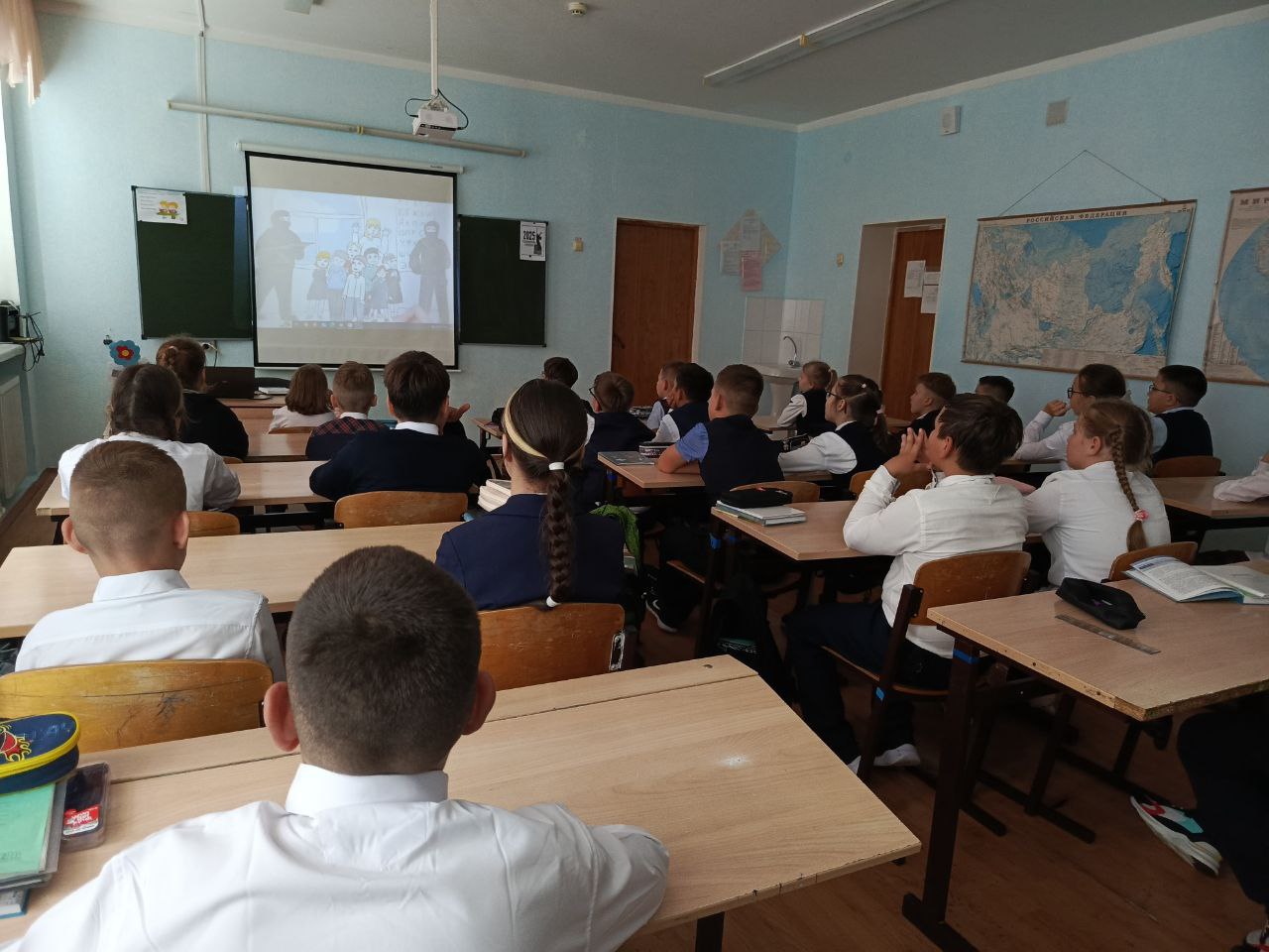 Советник директора по воспитанию и взаимодействию с детскими общественными объединениями Зарипова Э.И. совместно с учителем истории Миндрахмановой Г.Р. рассказали и показали видеоролик ребятам 5-го класса о том, что терроризм стал глобальной проблемой человечества, его проявления влекут массовые человеческие жертвы и разрушение материальных и духовных ценностей.