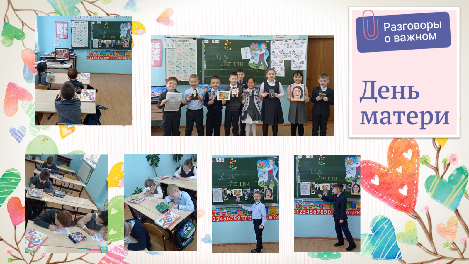 Мама — первое слово, главное слово в каждой судьбе... В преддверии Дня матери сегодня 21 ноября во всех классах прошли традиционные внеурочные занятия «Разговоры о важном», главной темой которых стало самое родное, самое милое, самое теплое слово «мама». Цель занятий — сформировать бережное отношение к женщине-матери, уважение к материнскому труду и к многодетным матерям России. Замечательно, что существует такой праздник.Помнить о мамах, конечно, нужно не один день в году, а ежедневно, ежечасно. Ведь именно от мамы зависит, каким вырастит каждый из нас. Общество и школа, несомненно, оказывают определенное влияние на становление личности человека, но, главным образом, личность формируется в семье. И сегодня, все ребята с большим удовольствием говорили о своих мамах, вспоминали русские пословицы и поговорки, создавали образ матери с помощью примеров из поэзии, прозы и полотен художников.