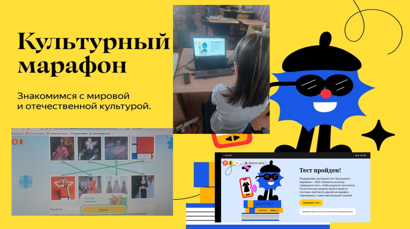 Наша школа приняла участии в акции «Культурный марафон».Марафон является мероприятием межведомственного культурно-просветительского проекта Минкультуры России и Минпросвещения России «Культура для школьников», при участии ООО «ЯНДЕКС».