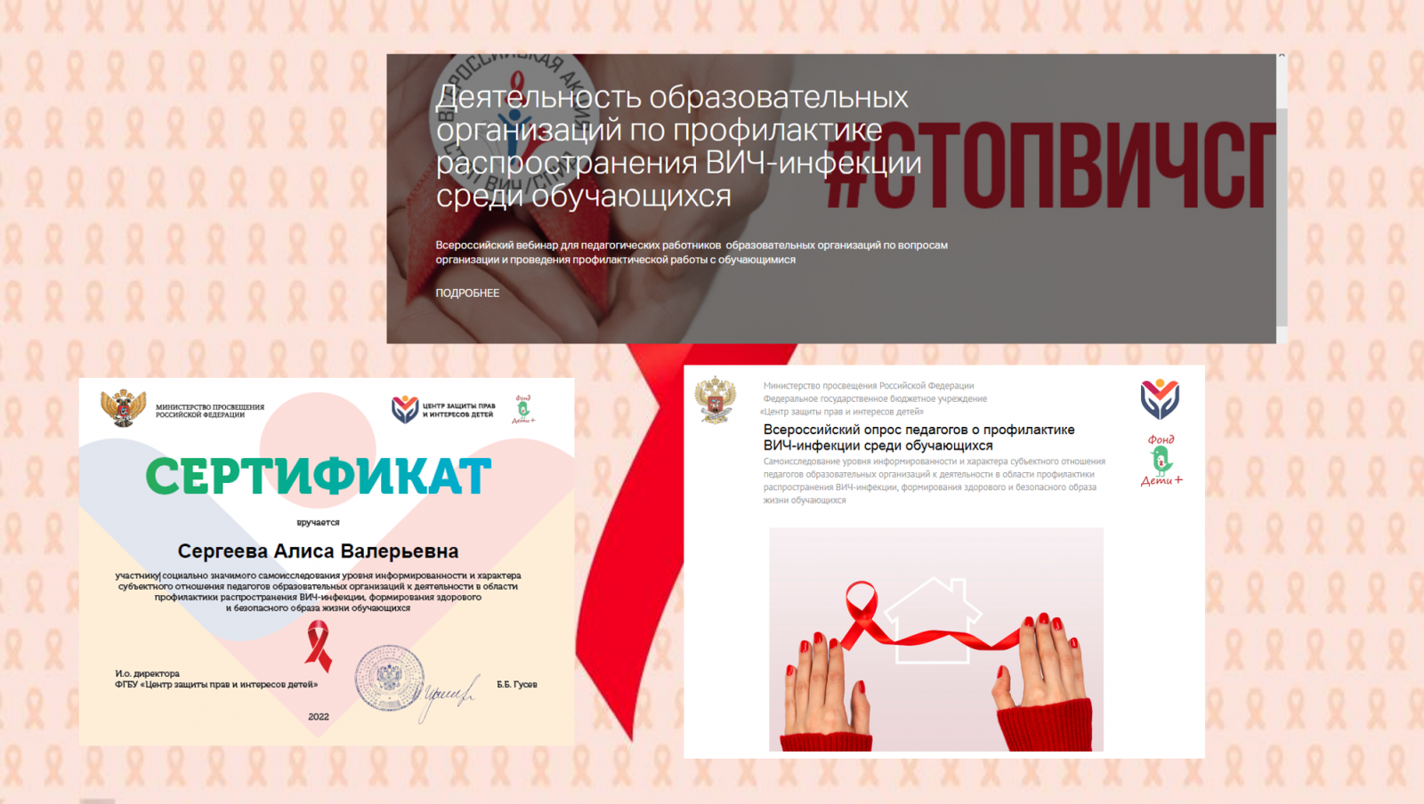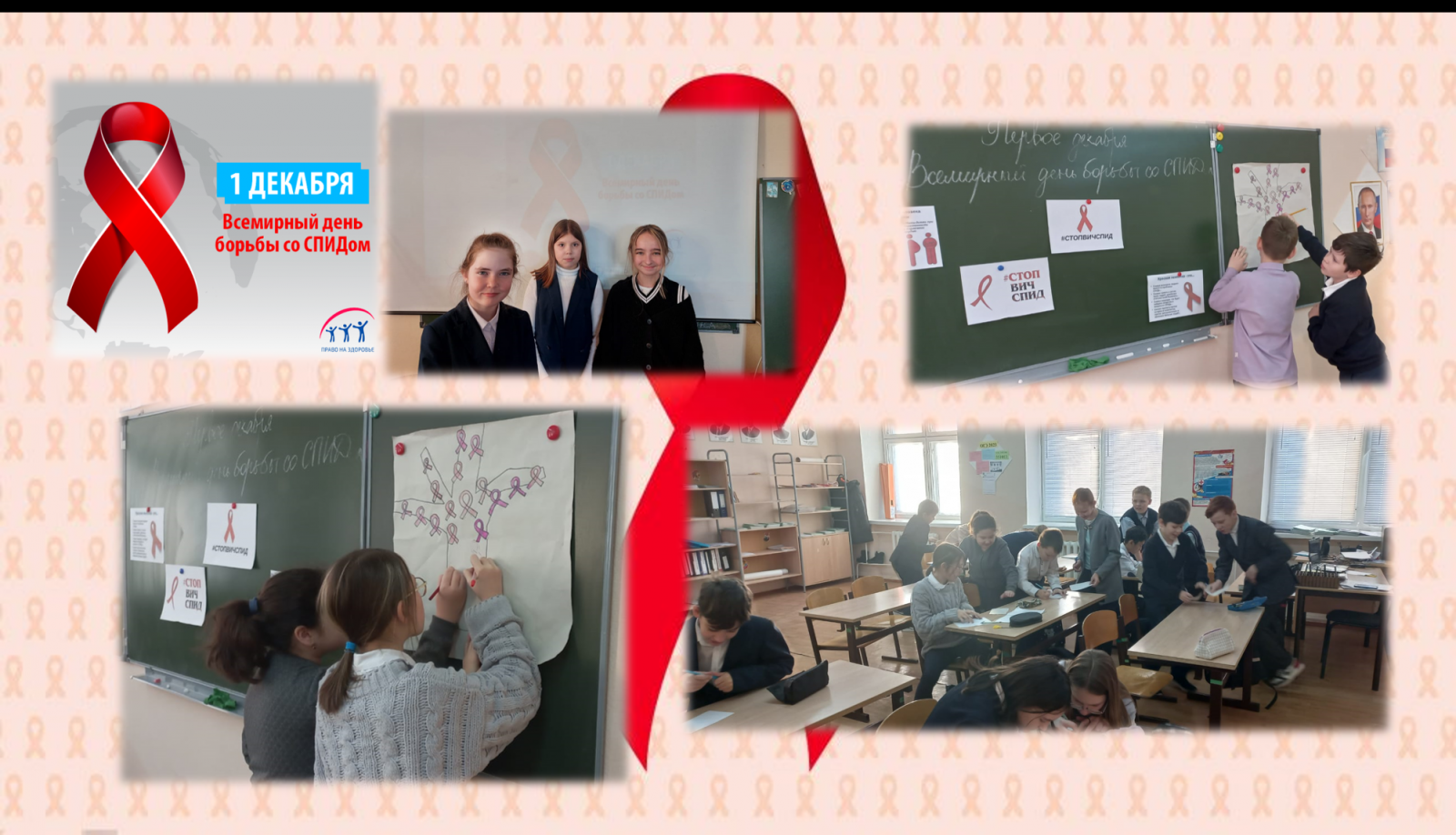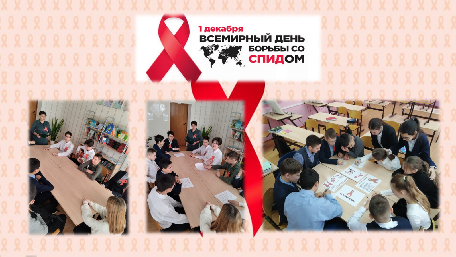 В нашей школе стало традицией проводить мероприятия, посвященные Всемирному дню борьбы со СПИДом. Цель проведения мероприятий: обобщение и закрепление знаний обучающихся о происхождении вируса иммунодефицита человека, о способах его передачи, течении болезни, способах защиты; выработка активной жизненной позиции по предотвращению поведенческих рисков, связанных с возможностью заражения ВИЧ; формирования убеждения в необходимости соблюдения здорового образа жизни с целью профилактики; формирование представления о реальных масштабах распространения.