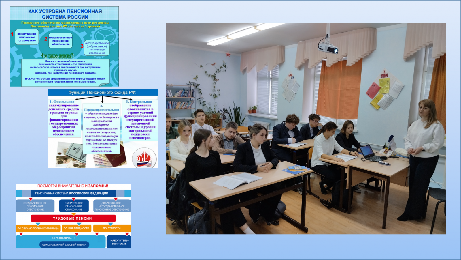 Лениногорского района, сегодня, 28 ноября, для учащихся 9 класса было проведено занятие с участием главного специалиста - эксперта клиентской службы на правах отдела Лениногорского района Бульгиной Татьяной Борисовной. Эксперт продемонстрировала видеофильм, раскрывающий азы пенсионного обеспечения граждан России. Далее состоялось обсуждение наиболее интересных вопросов, так же учащиеся изучили раздаточный материал. Просто о сложном– так можно назвать данное мероприятие. -